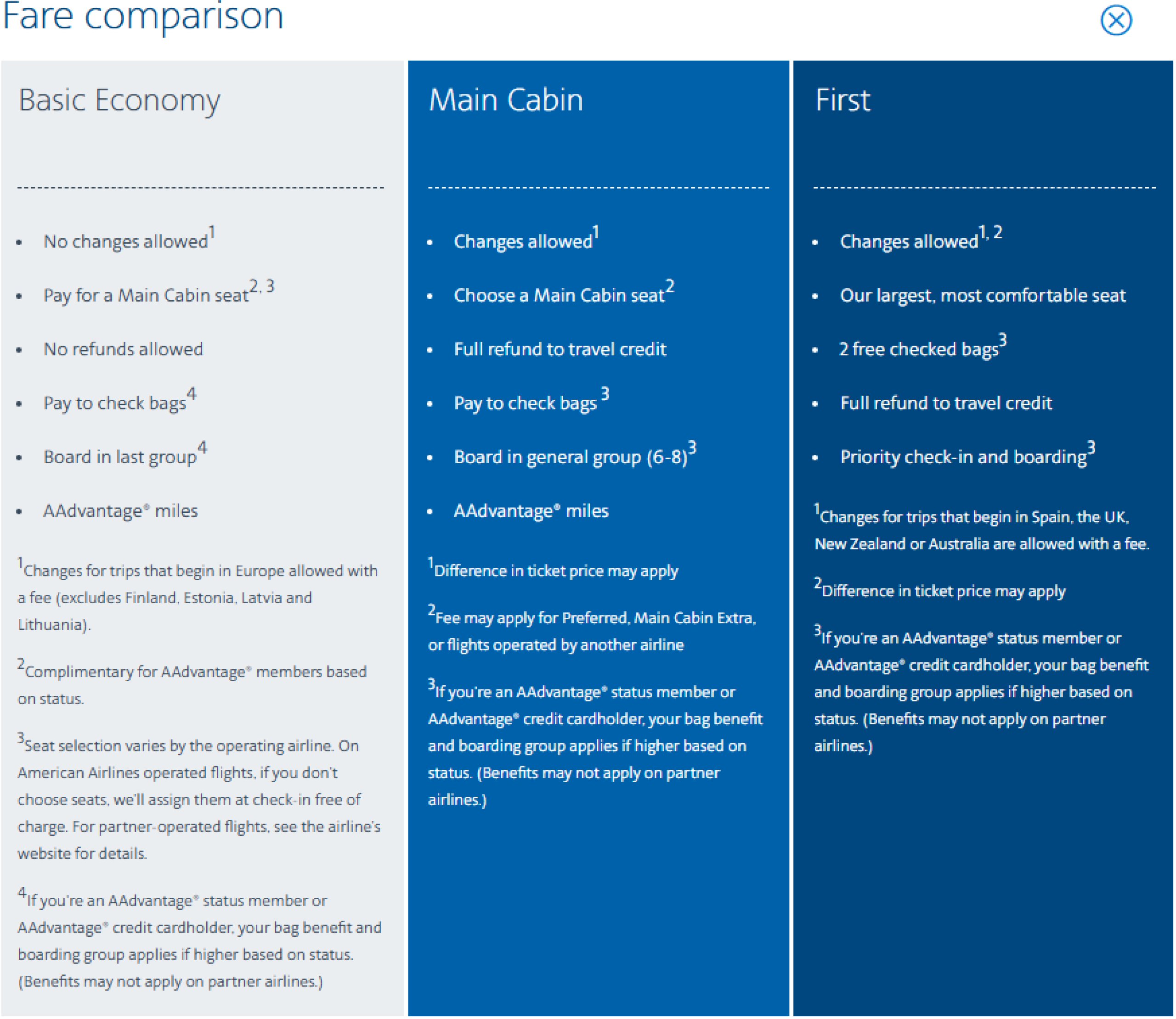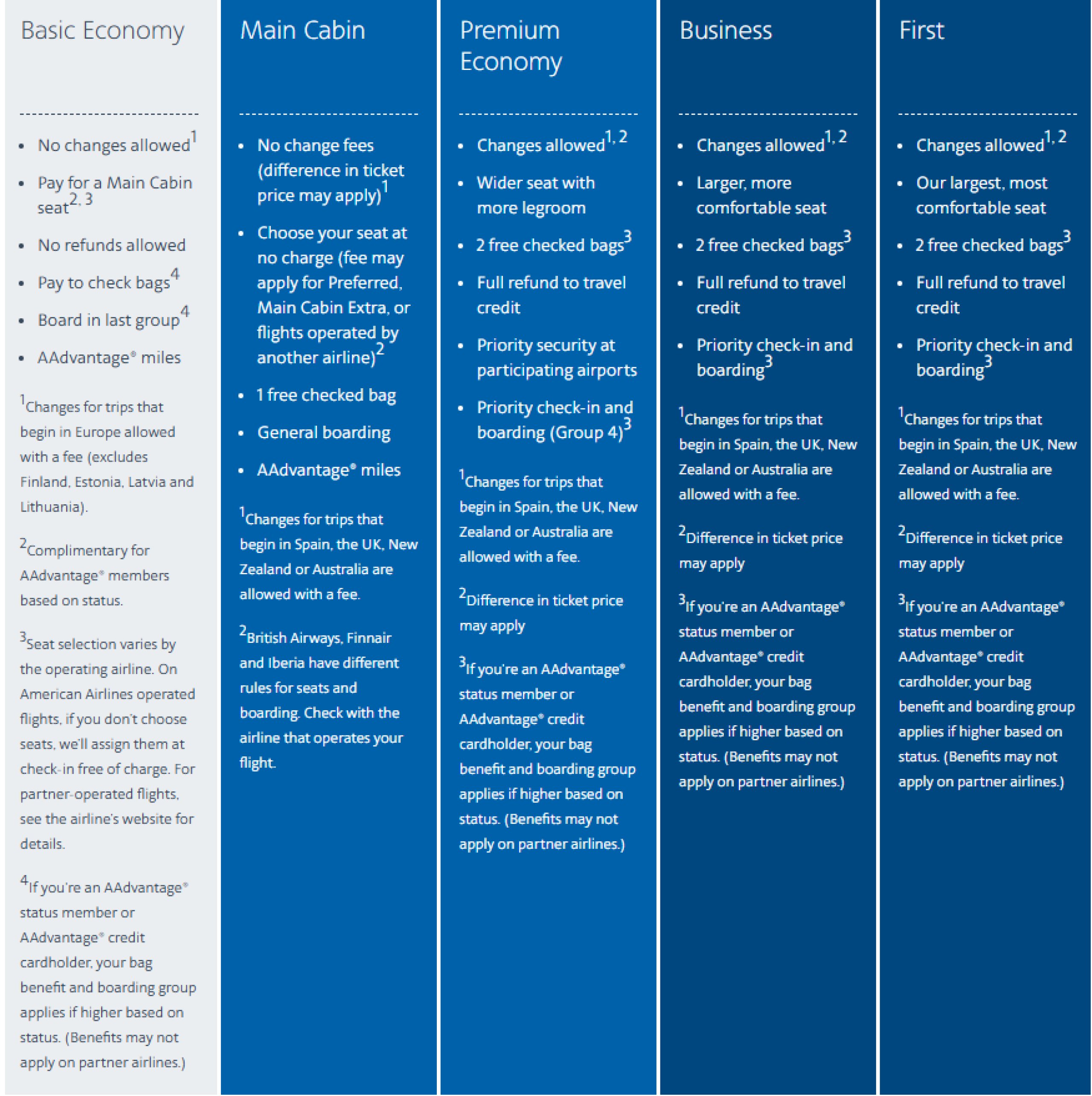 American Airlines ofrece clase turista, turista premium, business y primera clase en sus aviones.