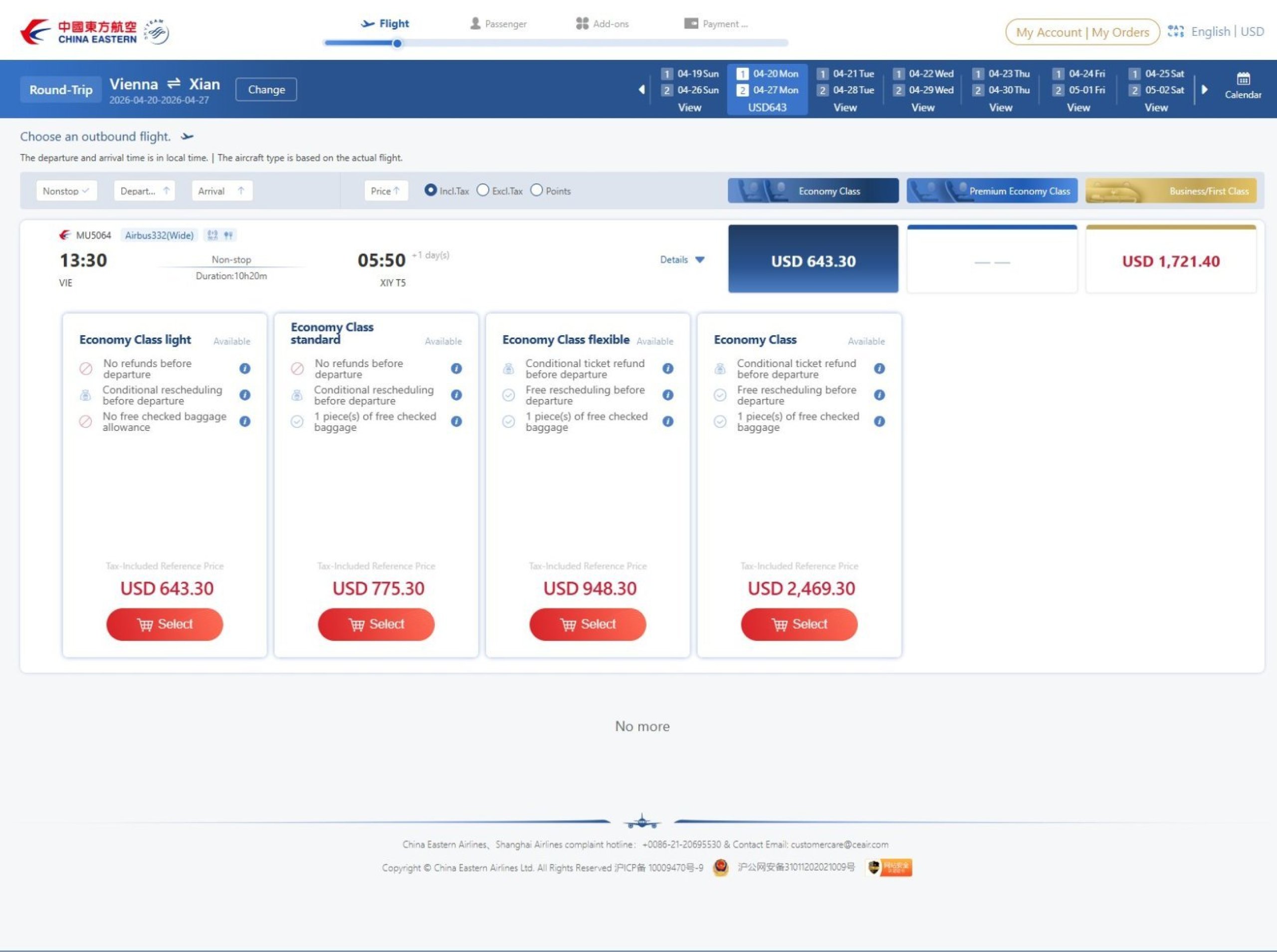 Y China Eastern empezará a volar entre Viena y Xi'an el 20 de abril.