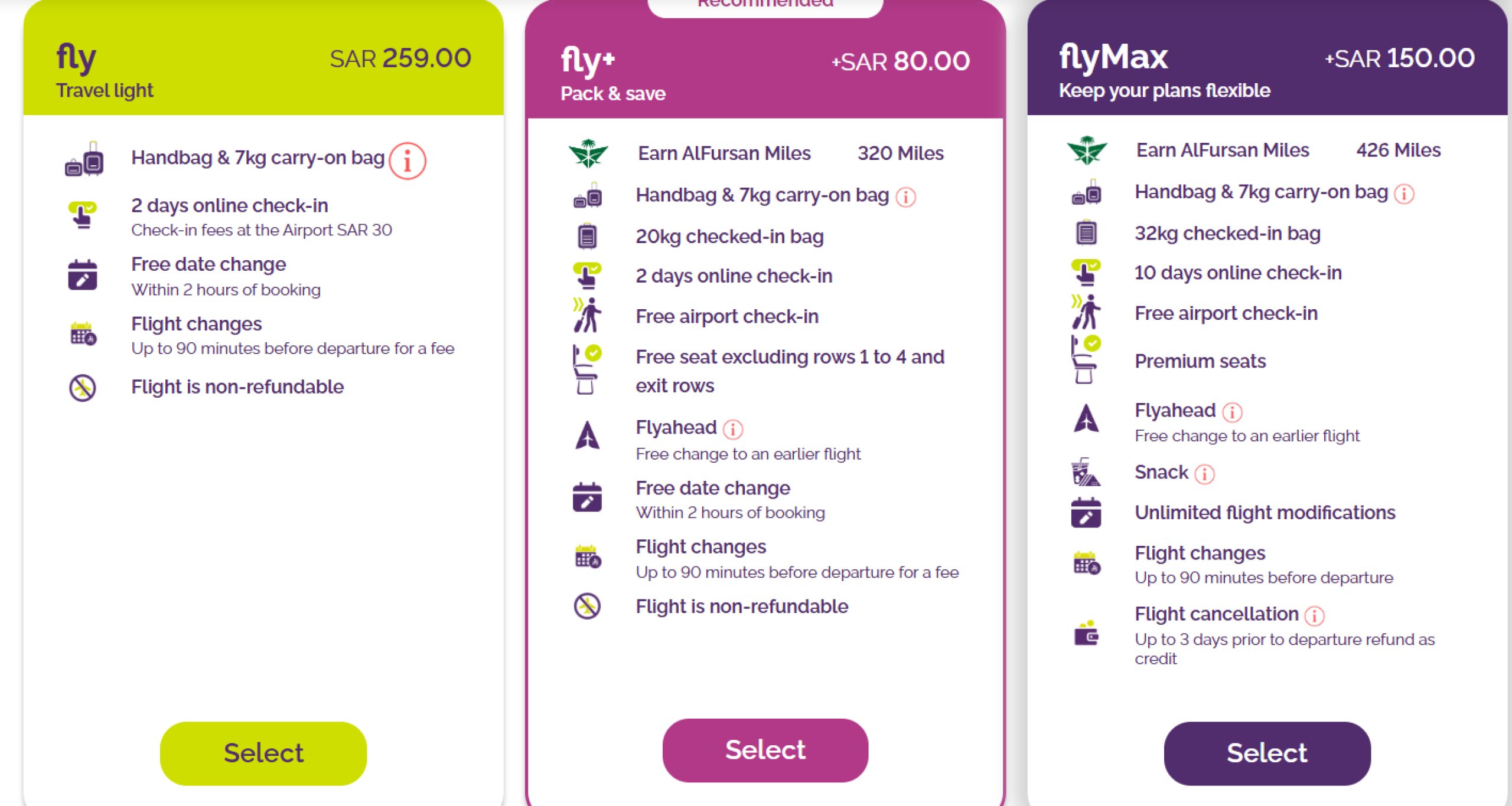 Flyadeal sólo ofrece clase económica dividida en 3 grupos de tarifas diferentes.