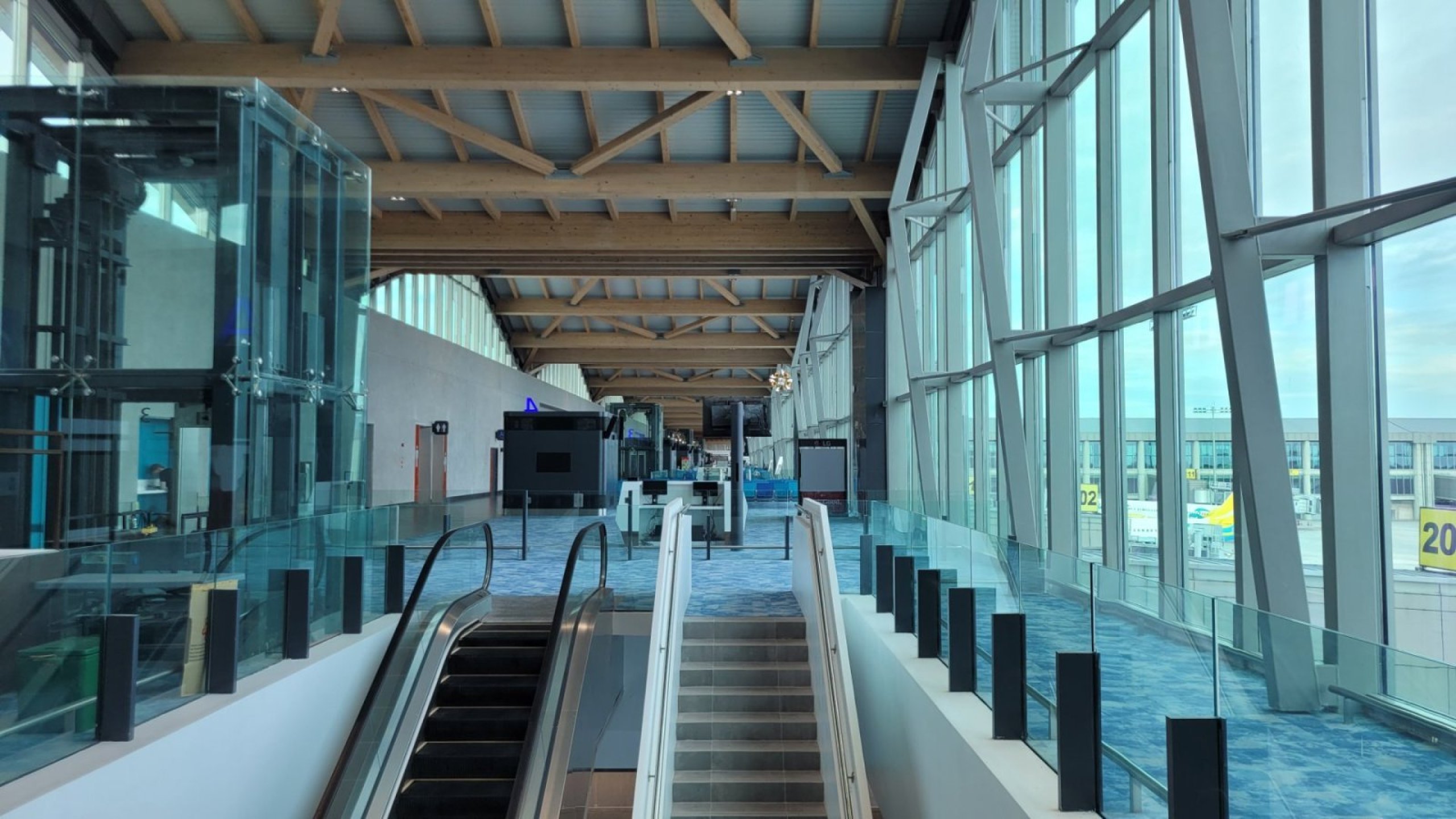 También hay una nueva carretera de acceso ancho que es de varios kilómetros de largo y es completamente diferente a la antigua de acceso. Hoy vuelo internacional así que tengo curiosidad por ver cómo es allí.