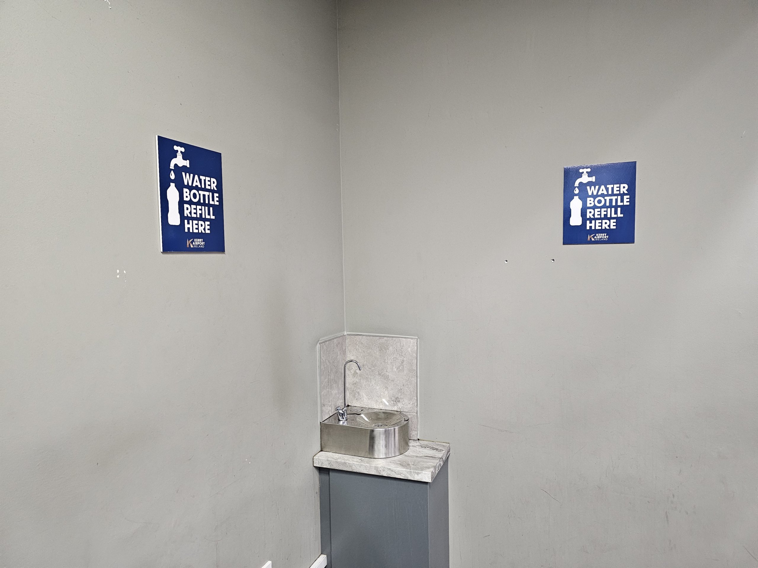 Puede llenar su propia botella de agua potable gratuita después del control de seguridad en las puertas de embarque.