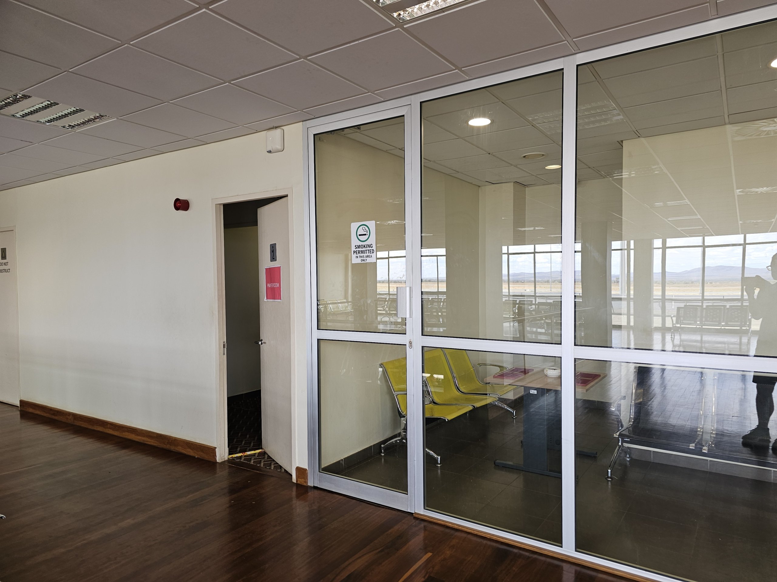 La sala de fumadores se encuentra en la primera planta de la zona de tránsito.