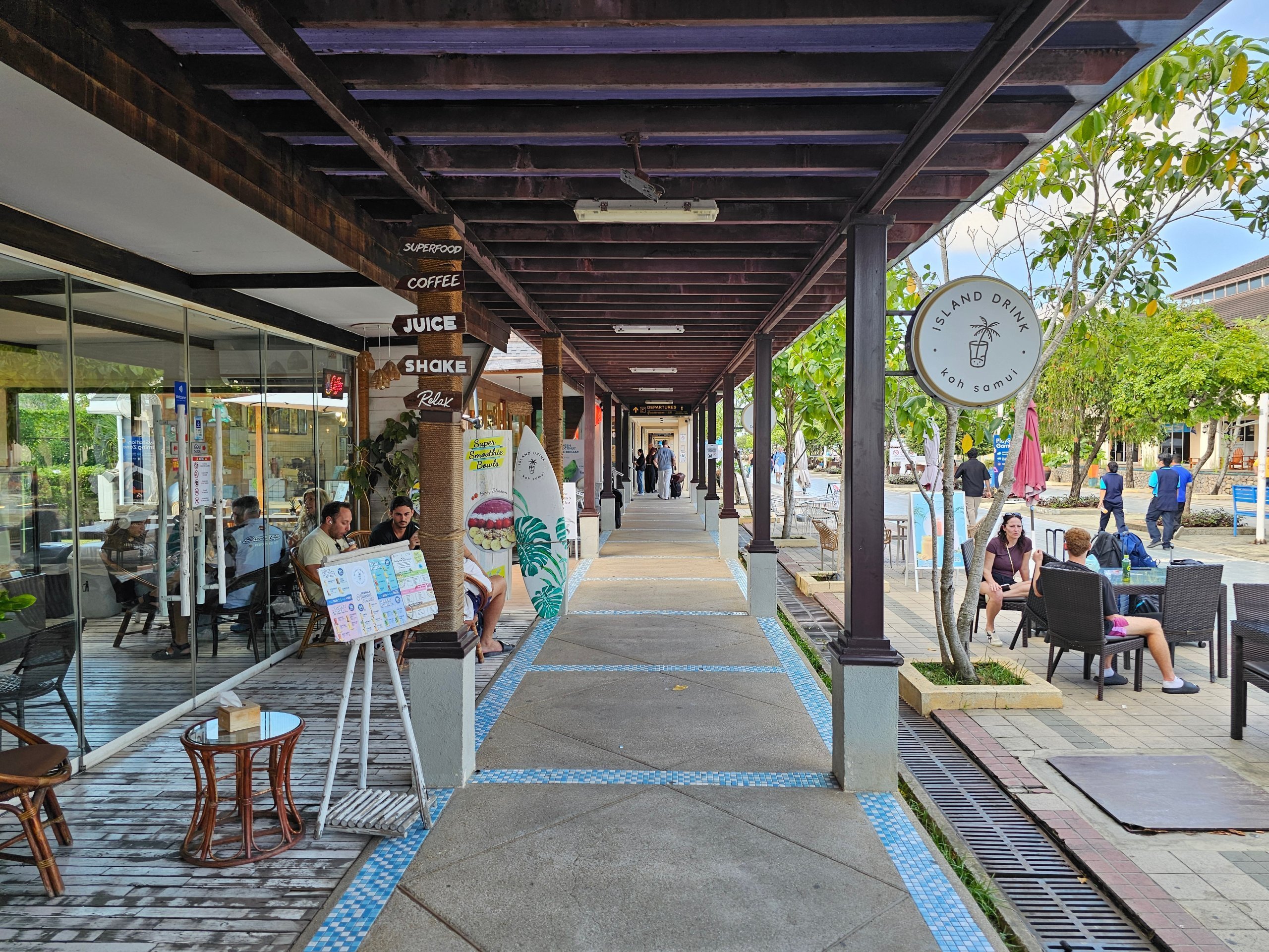 La única oficina de cambio de divisas se encuentra en el vestíbulo de facturación, junto a los mostradores de facturación. Sin embargo, los tipos de cambio son muy desfavorables, por lo que recomendamos cambiar una pequeña cantidad de dinero y el resto en el centro de la isla, por ejemplo en el centro comercial Central Samui.