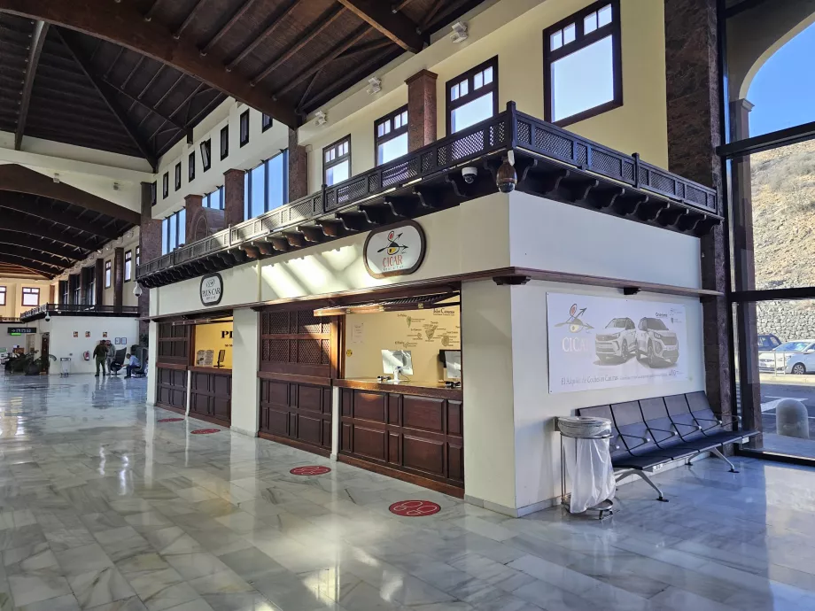 Todas las empresas de alquiler de coches que operan en La Gomera se encuentran en la misma terminal de llegadas.