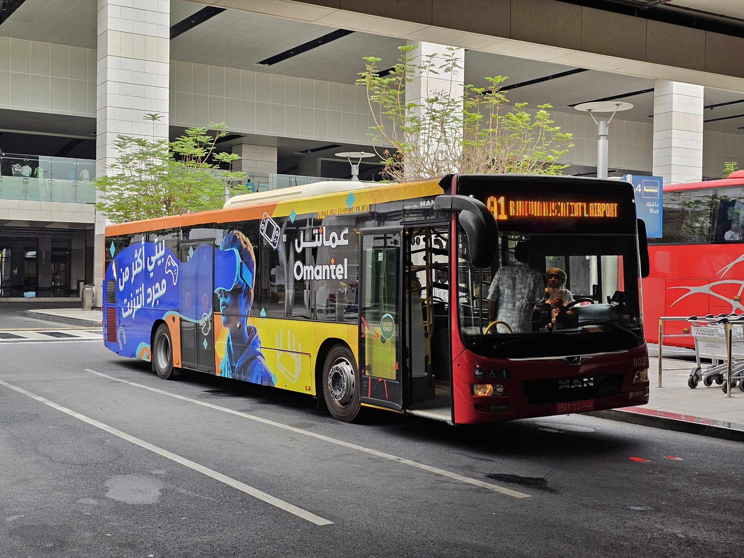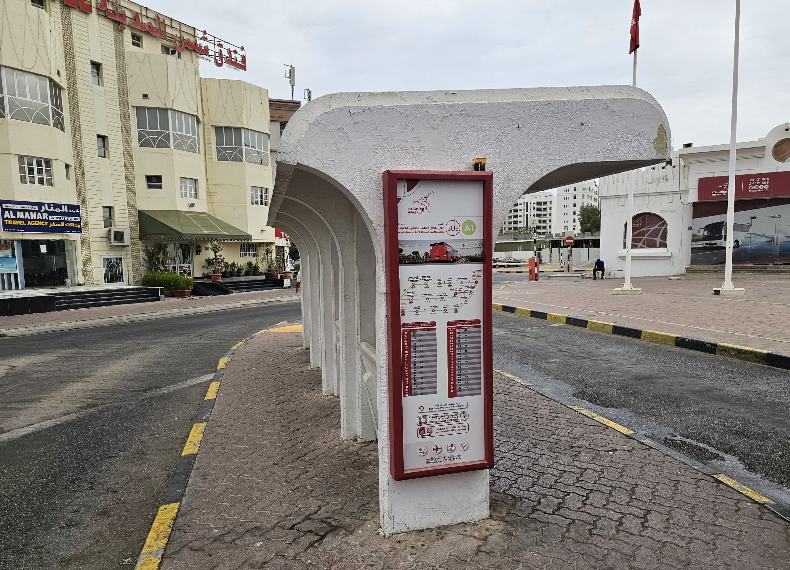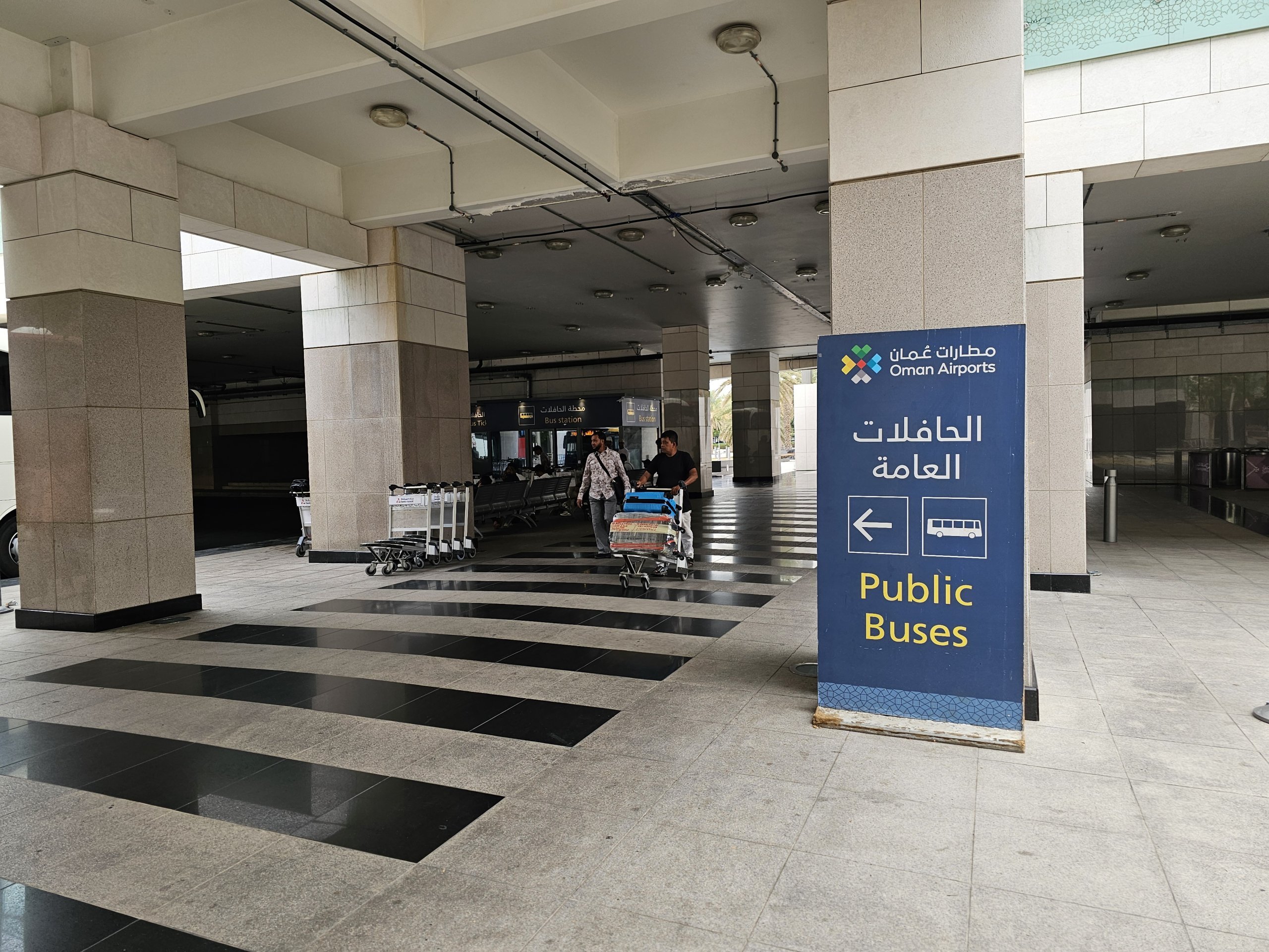 La línea A1 conecta el aeropuerto con el centro y la estación de autobuses de Ruwi. El aeropuerto no es una terminal de la línea A1, por lo que los autobuses también circulan desde aquí a las afueras de Mascate hasta la estación de autobuses de Mabelah, en Seeb, que no es un destino atractivo para los turistas.