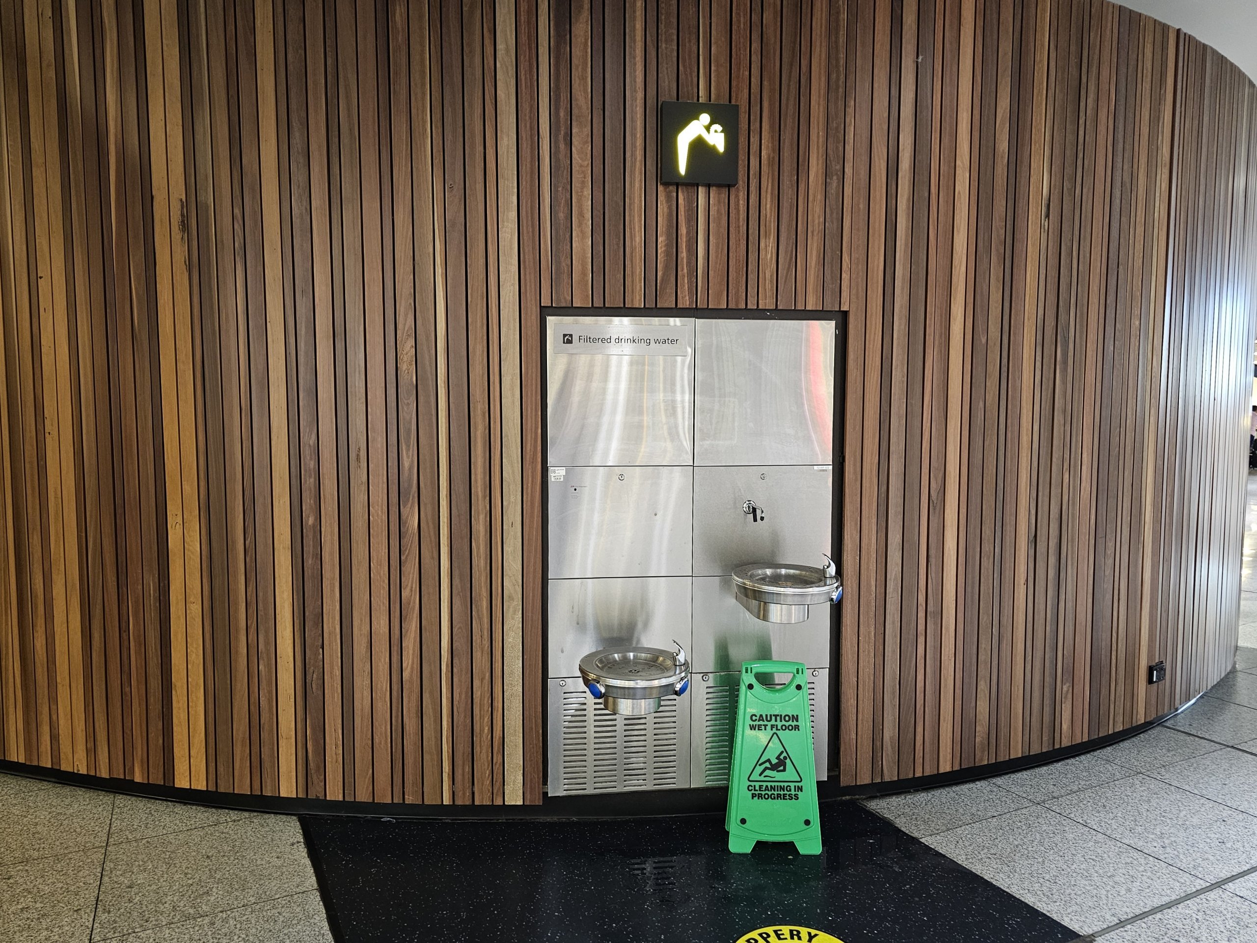 Hay fuentes de agua potable en todas las terminales después de los controles de seguridad, y puede llenar su propia botella gratuitamente.