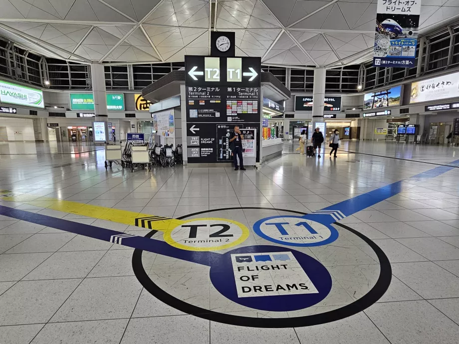 El aeropuerto de Nagoya Chubu Centrair utiliza 2 terminales a unos 10 minutos a pie o 2 minutos en autobús de enlace gratuito.