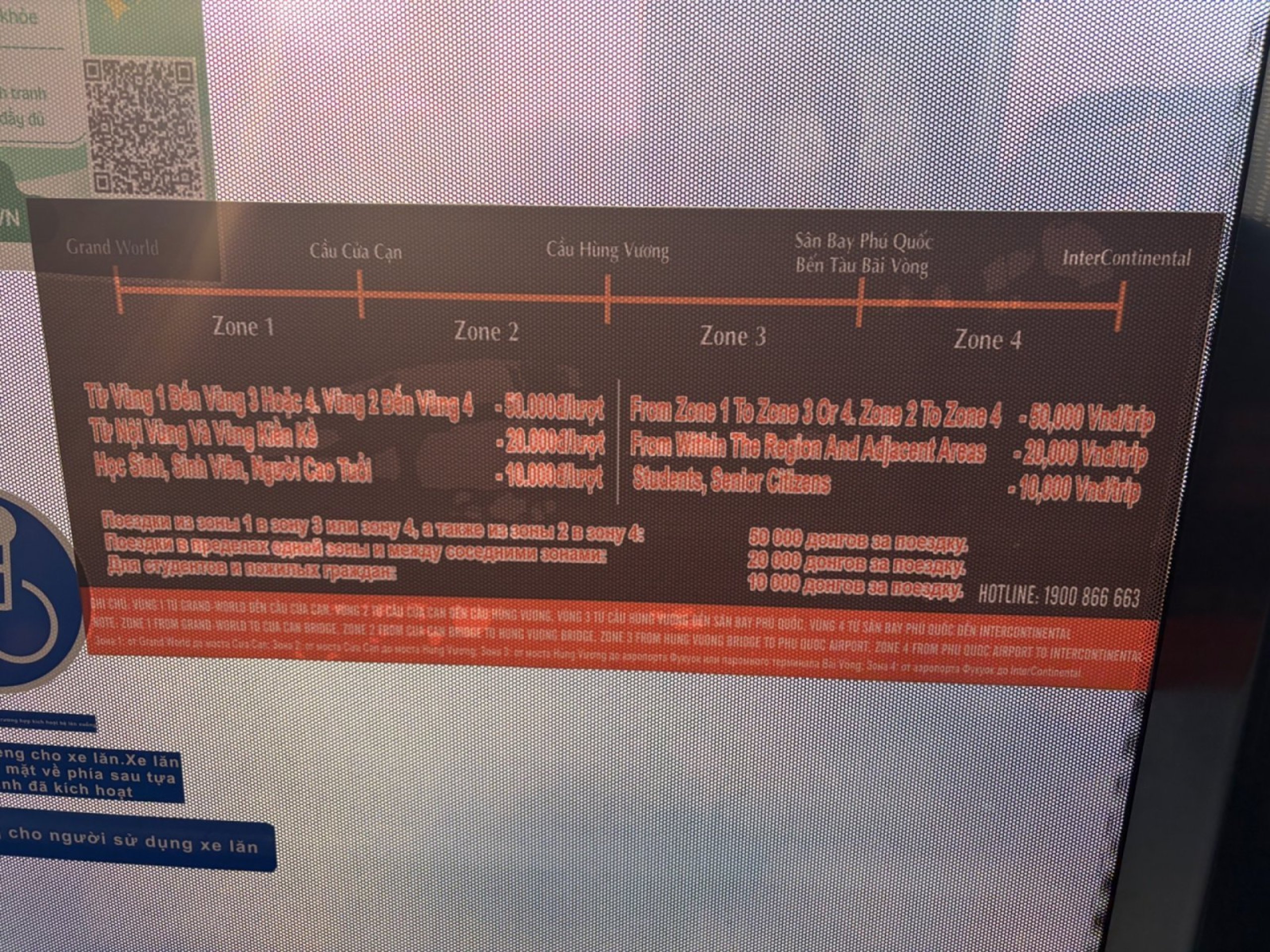 Los precios de los billetes se calculan por zonas y un solo viaje cuesta entre 10 000 vnd y 40 000 vnd.
