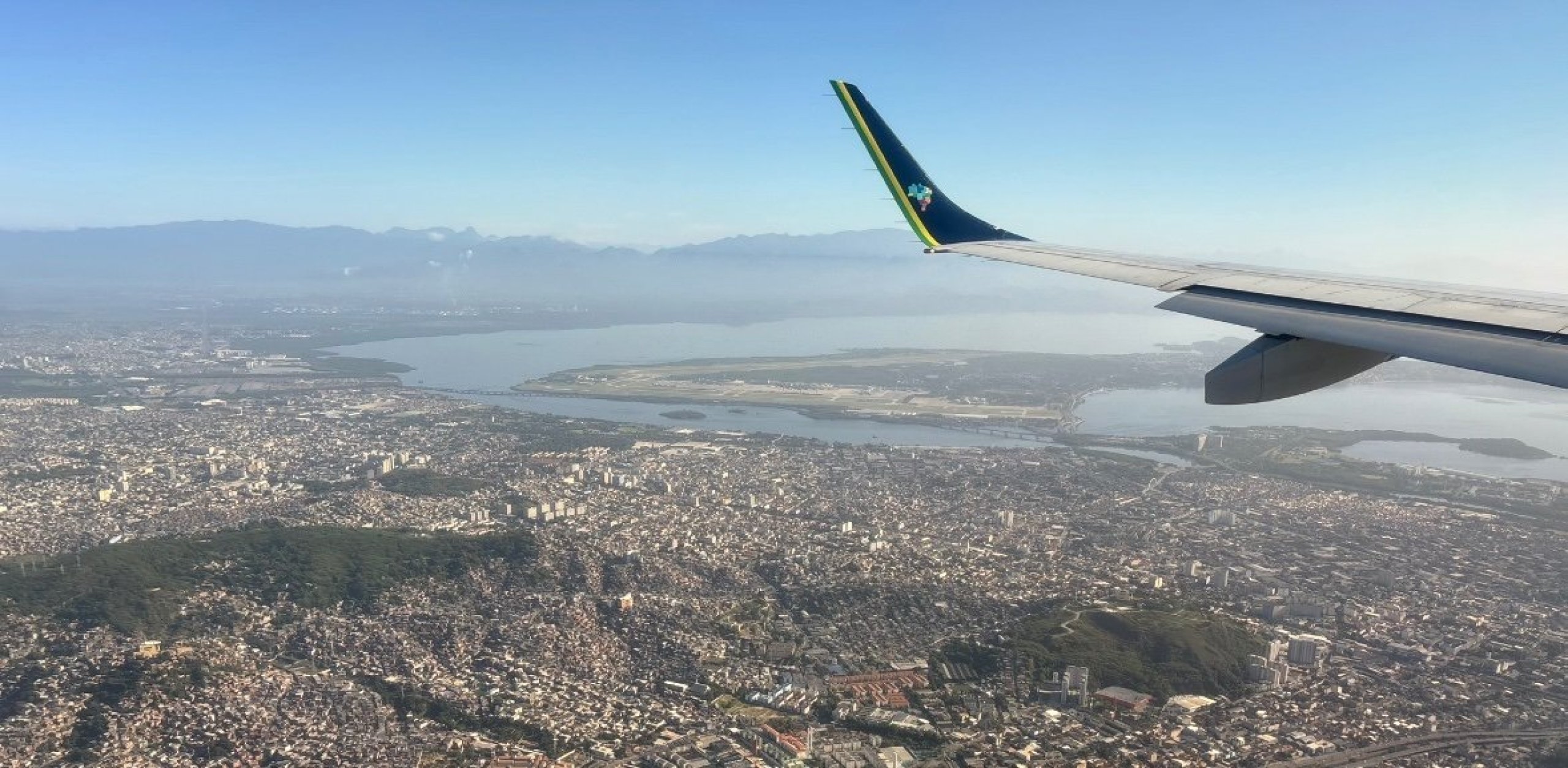 Vista del aeropuerto de Galeão en Ilha do Governador durante un vuelo GRU-SDU en Embraer-195 de Azul Linhas Aéreas.