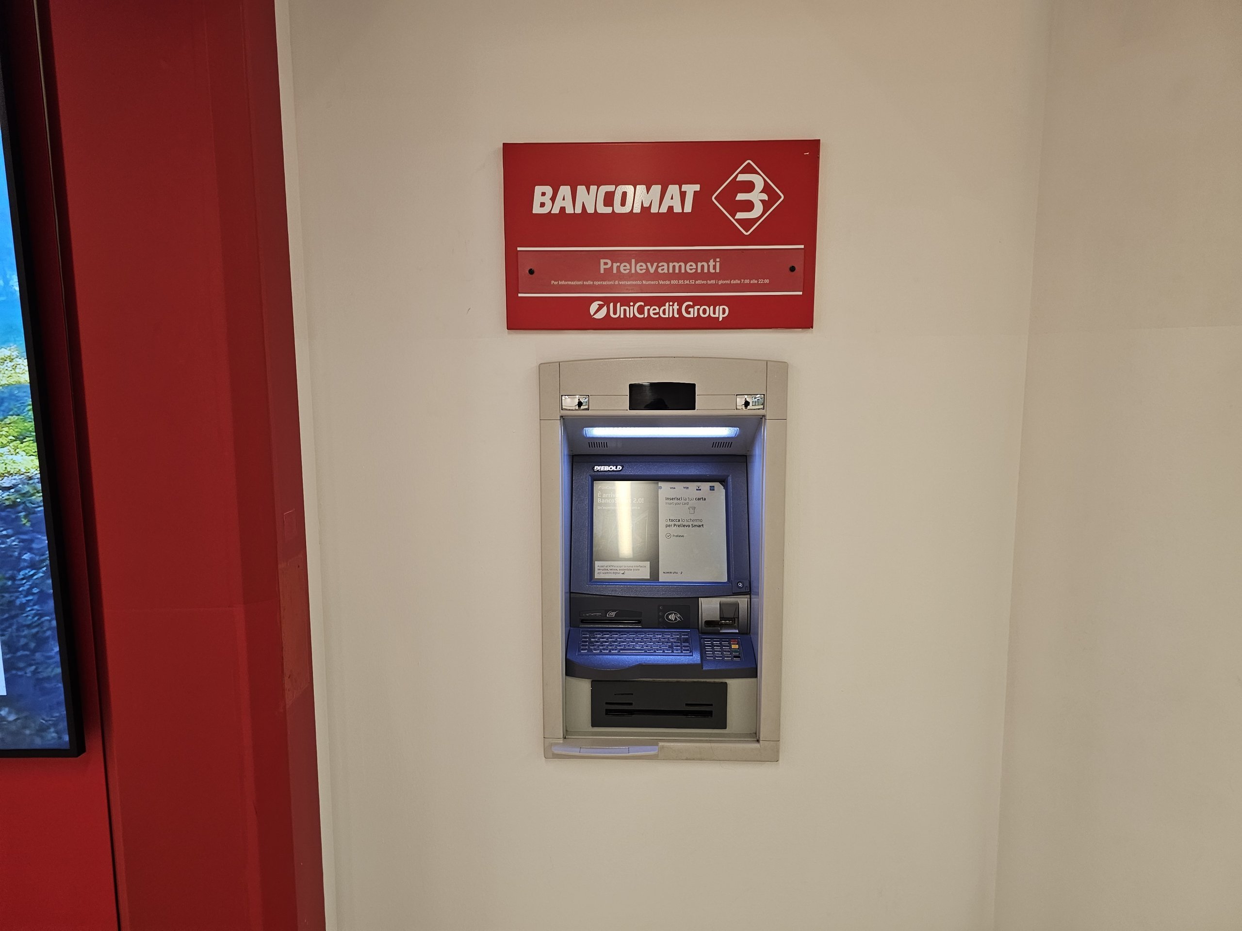 Hay un cajero automático UniCredit en la sala de salidas, entre los mostradores de facturación y seguridad, cerca del quiosco RELAY, que dispensa dinero sin comisión.