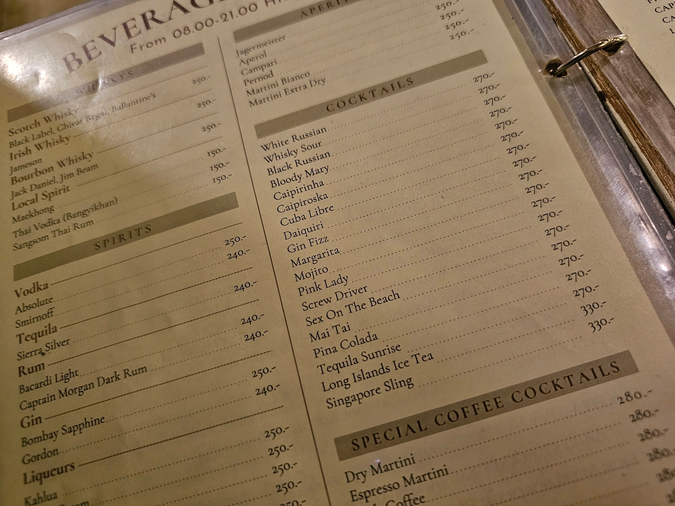 - bebidas - desde 250 thb