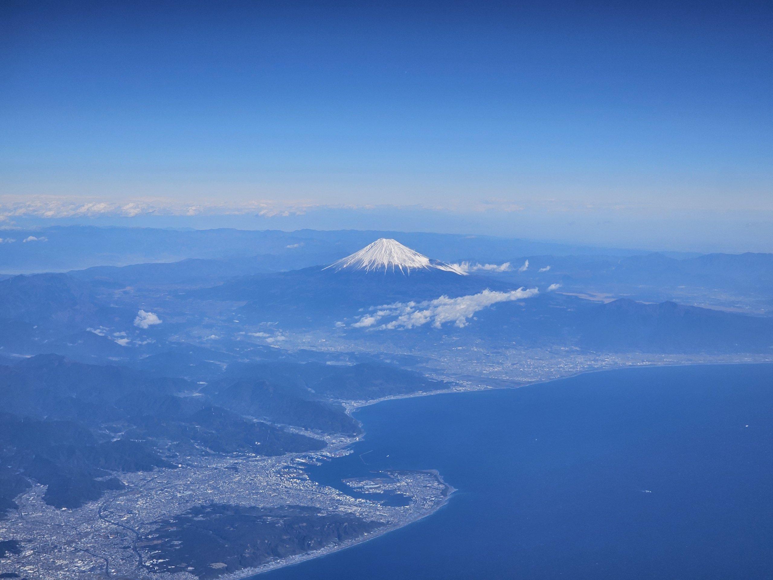 El monte Fuji suele ser fácil de ver desde un avión, sobre todo cuando se llega al aeropuerto de Haneda desde el oeste, normalmente desde Europa, Corea, China o ciudades japonesas al oeste de Tokio.