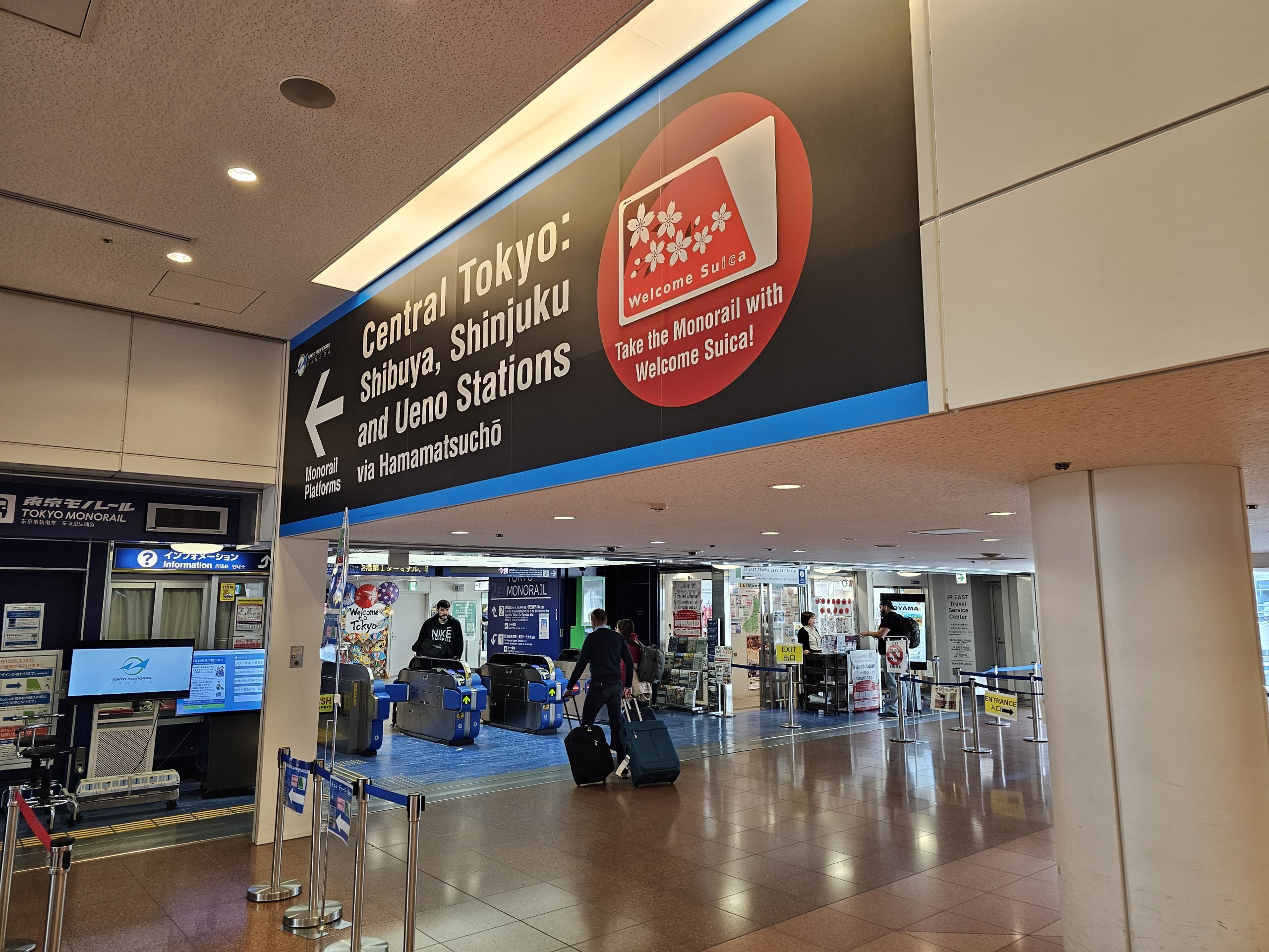 - en las máquinas expendedoras situadas fuera del andén del monorraíl (no en las máquinas expendedoras de los trenes Keikyu, pero la Suica puede utilizarse después en estos trenes)