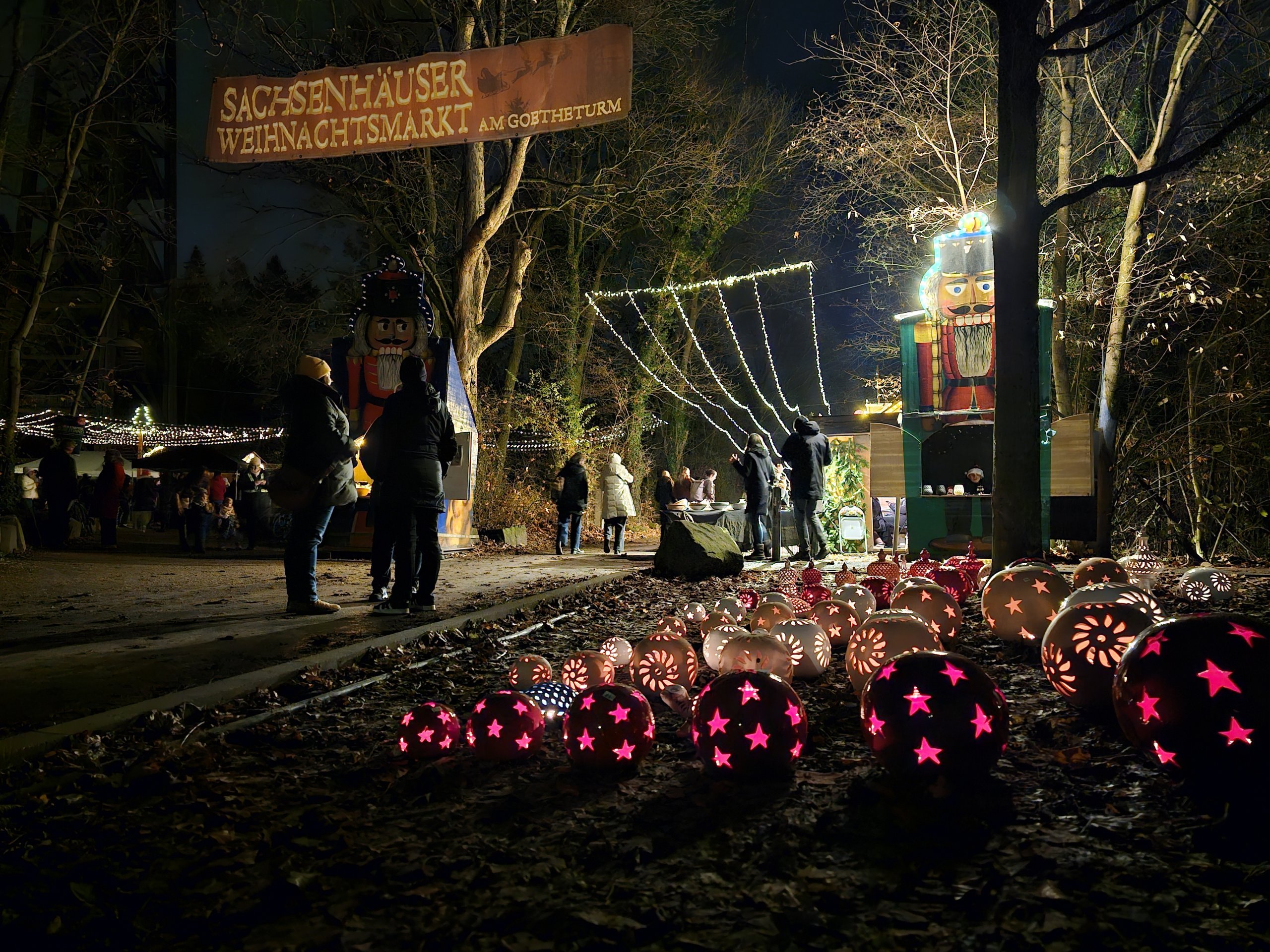 Si quiere experimentar un mercado navideño local sin los turistas y sin las multitudes extremas, diríjase a las afueras de Fráncfort, que se encuentra en el límite de un parque forestal bajo la torre mirador Goetheturm, de 43 metros de altura.