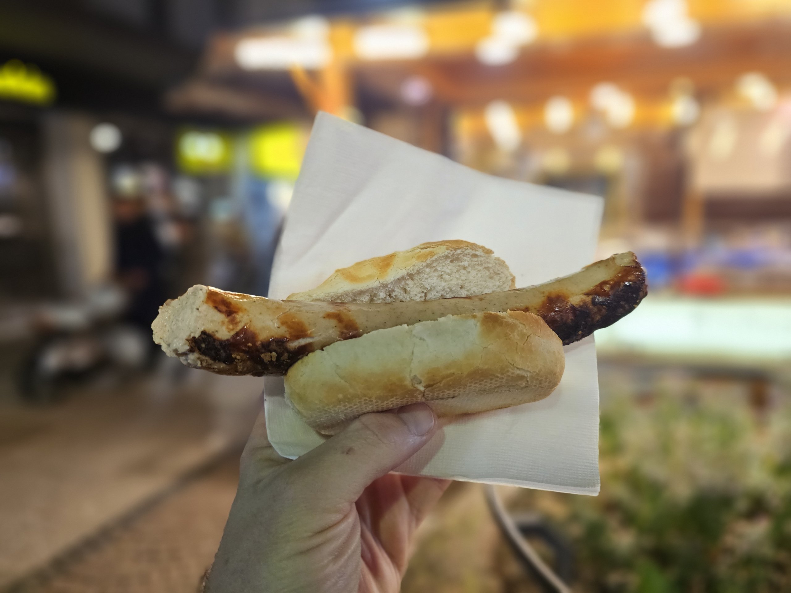En la adyacente calle Neue Kräme, por ejemplo, compré una estupenda Bratwurst por 5 eur.