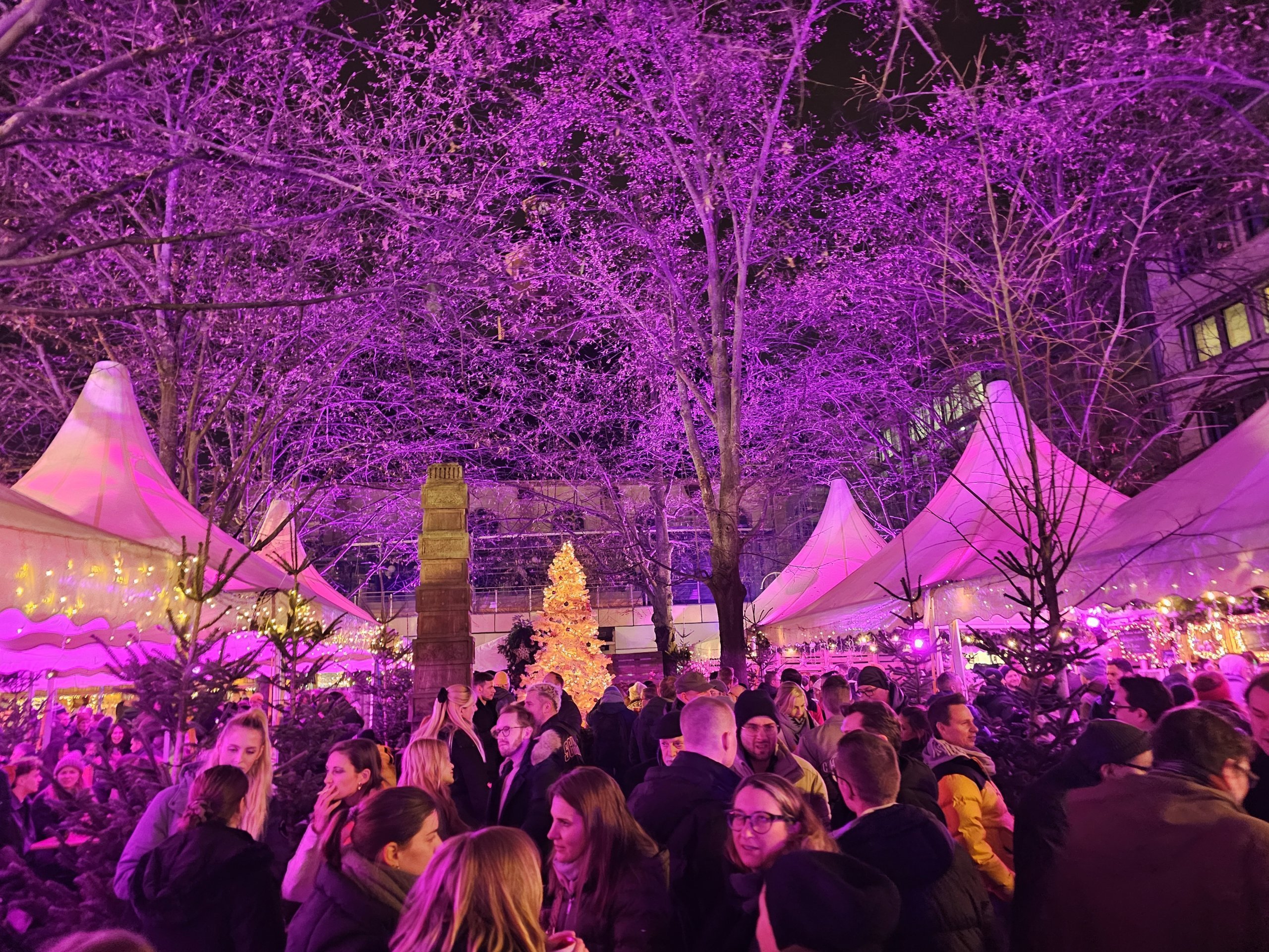 - ✅ La mayoría ambiente navideño con un árbol y un gran número de puestos de vino caliente