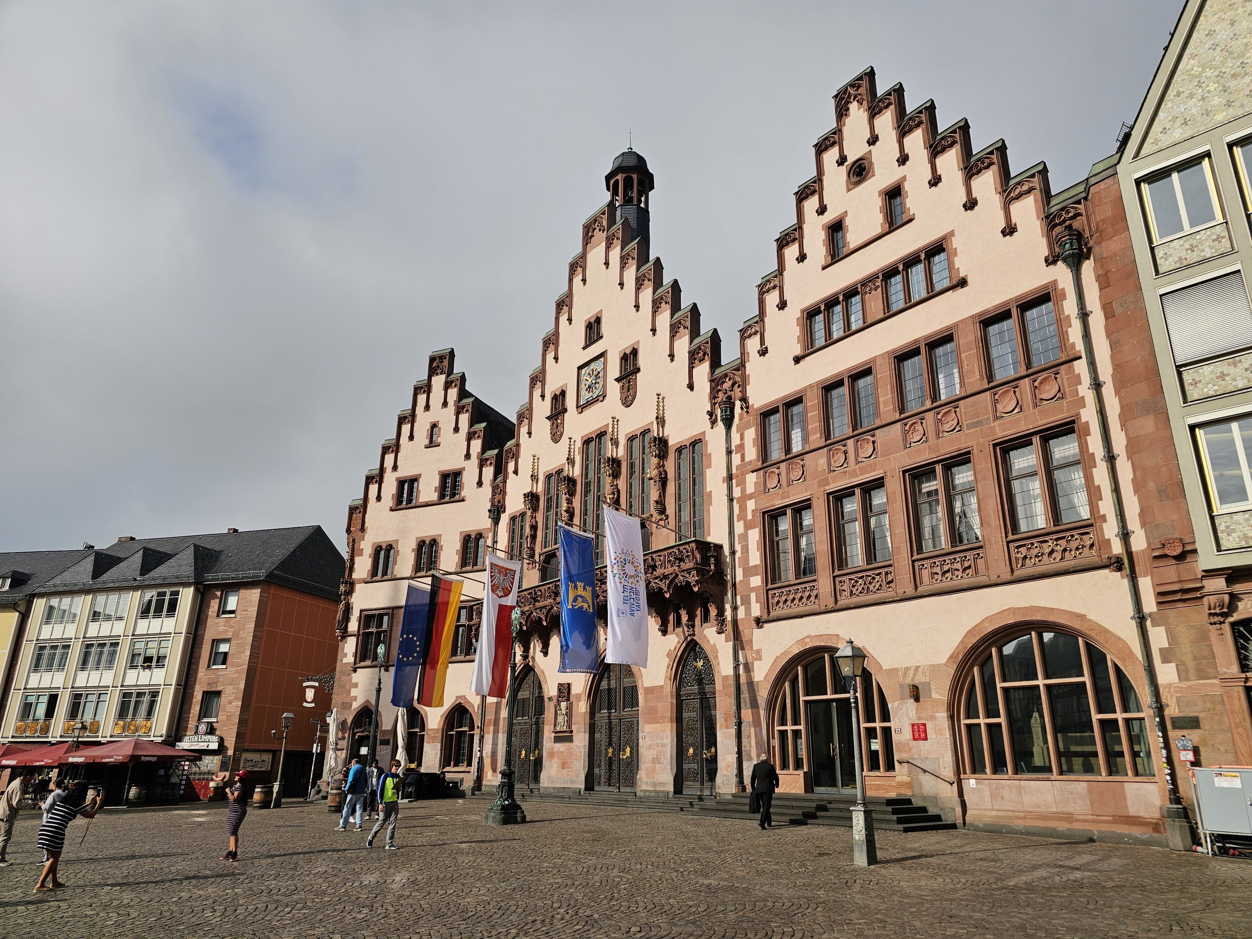 El complejo de edificios que da nombre a la plaza data del siglo XV y alberga el Ayuntamiento de Fráncfort.