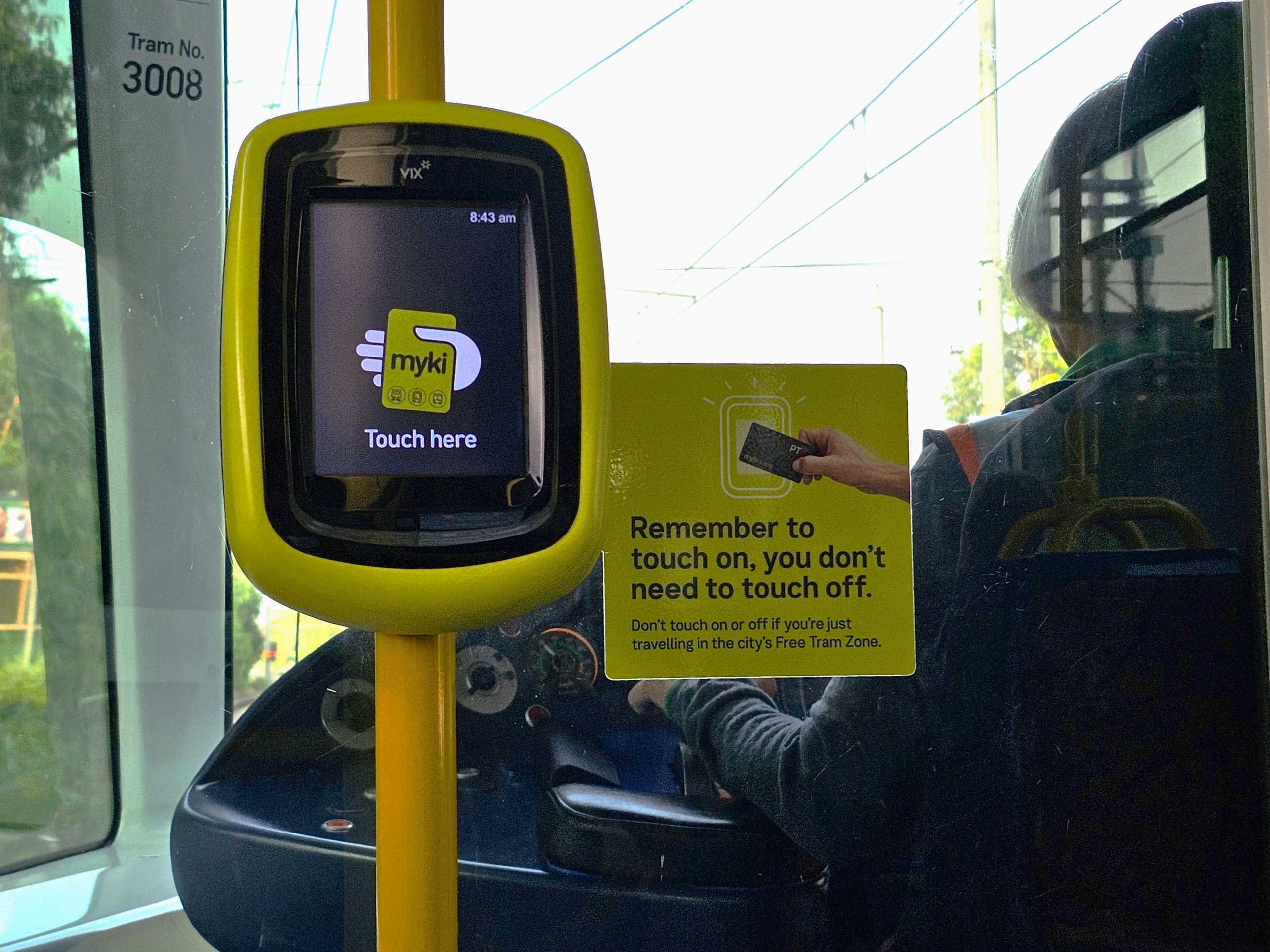 En Melbourne existe una tarifa myki única para todos los medios de transporte: tranvías, autobuses PTV, trenes urbanos/metros y trenes V/Line dentro de las zonas 1 + 2.