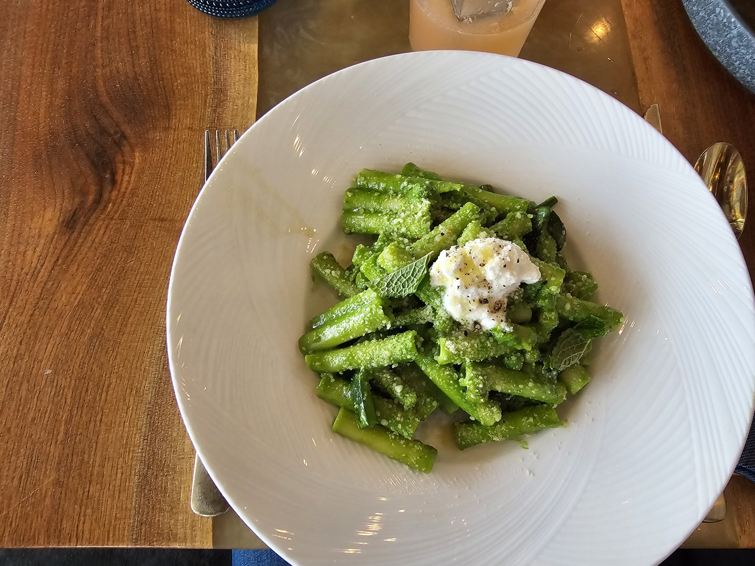 El menú incluye cocina americana moderna y, francamente, no nos entusiasmó demasiado la comida. Los dos platos eran extremadamente aceitosos.