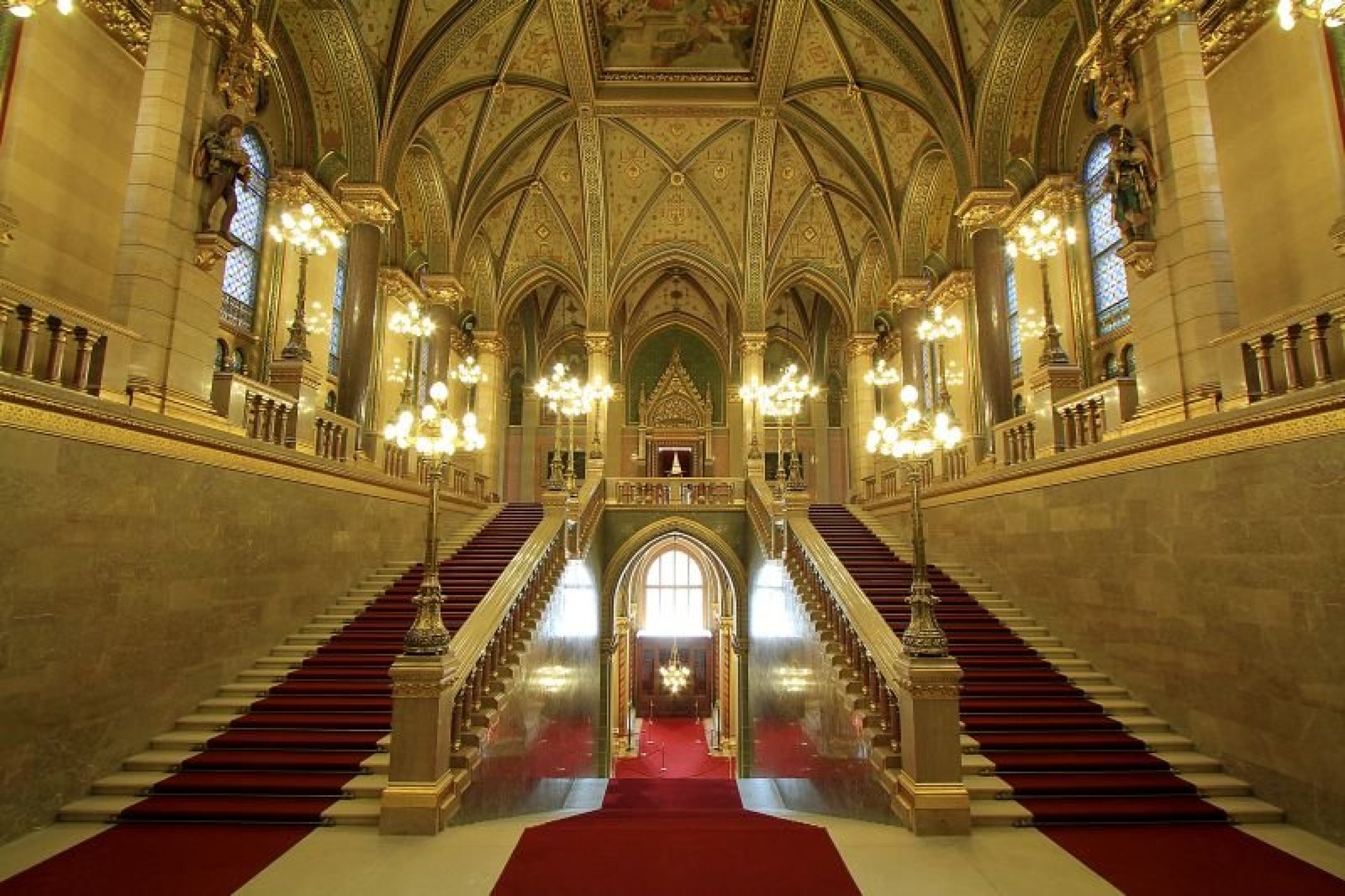 Sería una pena ver el magnífico edificio del Parlamento sólo desde fuera. Las salas del Parlamento, a veces increíblemente opulentas y magníficas, incluida la sala con las joyas de la Corona húngara, están abiertas al público, incluso todos los días de 8:00 a 16:00 horas.