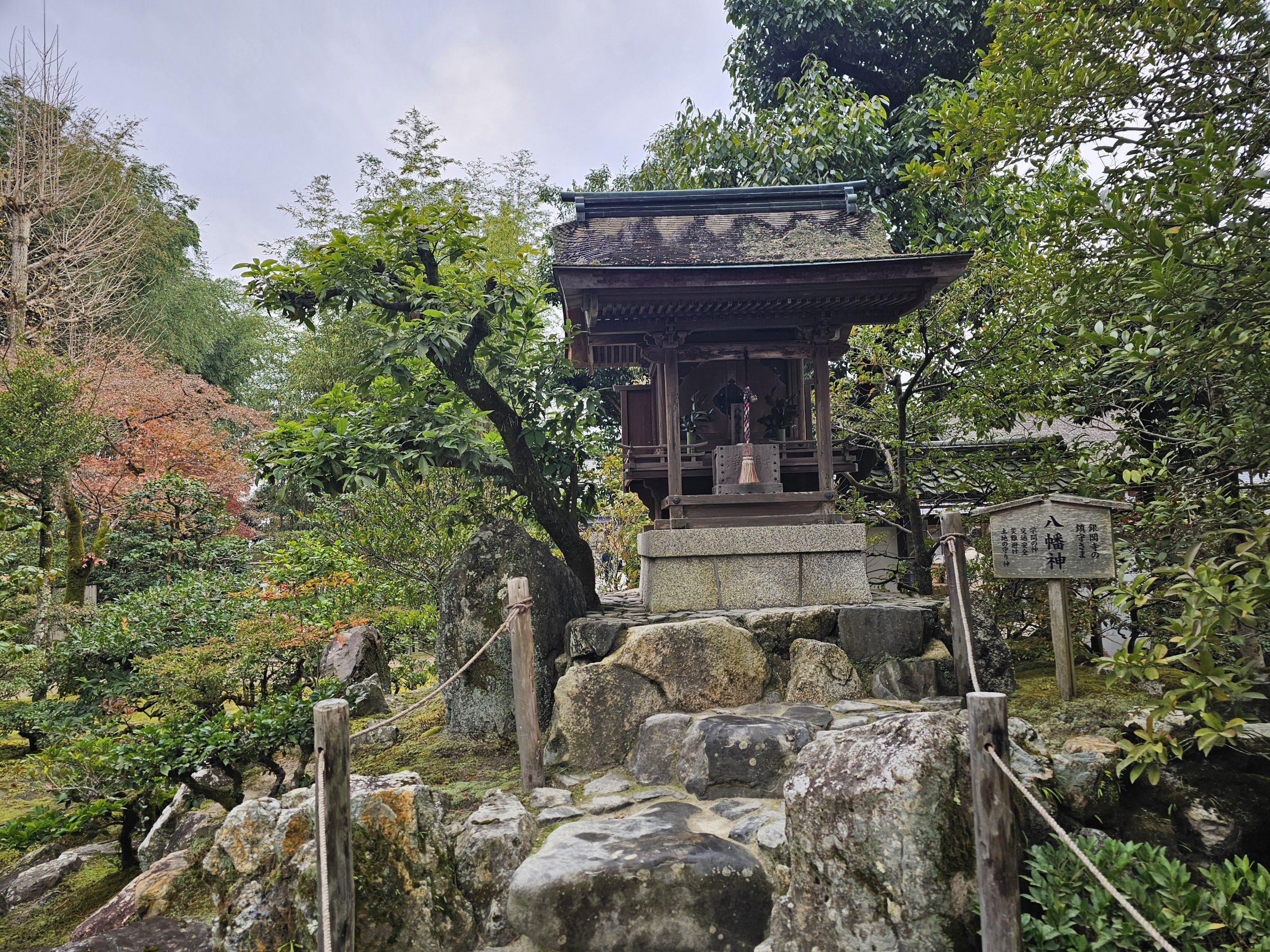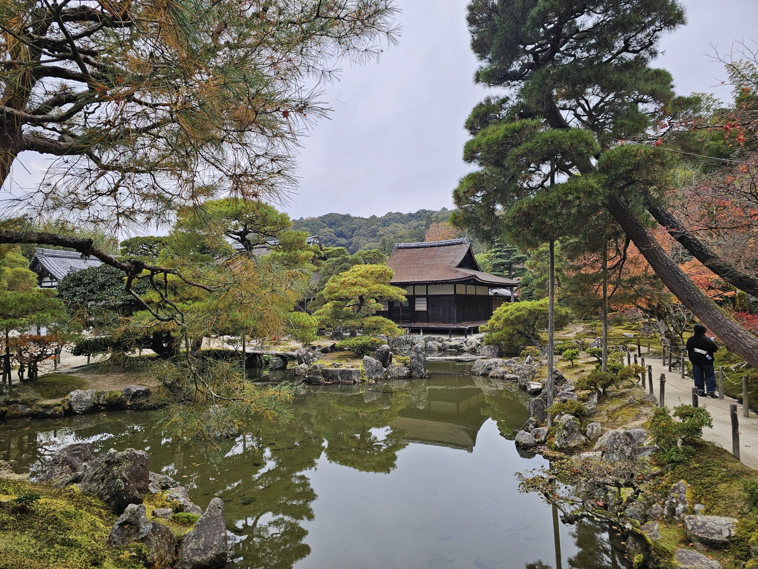 Situado en la parte oriental de Kioto, parece mucho más tranquilo que el Pabellón Dorado. El punto fuerte del lugar no está en el edificio en sí, sino en los jardines.