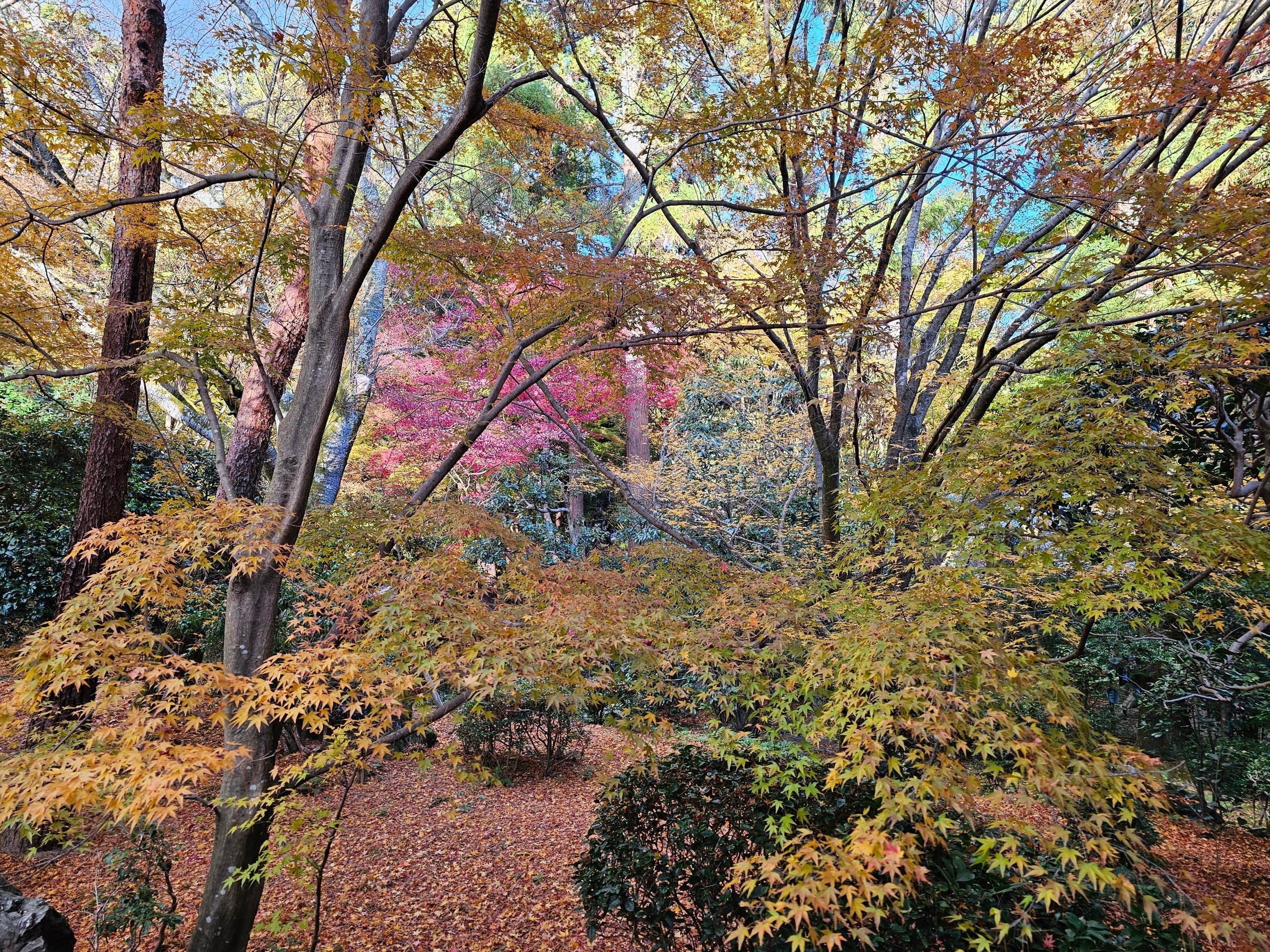 Detrás del templo hay un gran lago llamado Kyōyō-chi, alrededor del cual hay un paseo muy agradable.