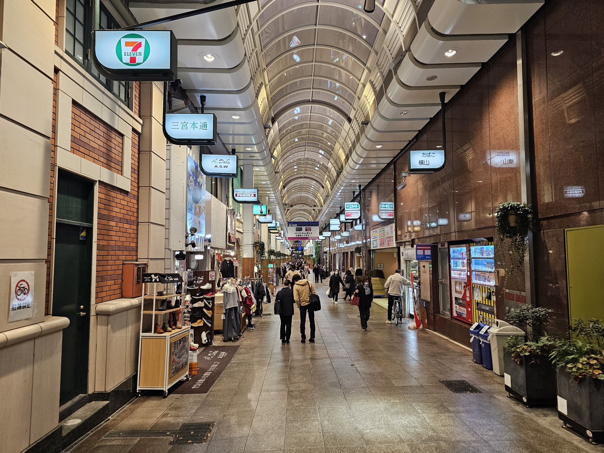 Tanto la zona de Sannomiya como la de Motomachi son conocidas por sus calles porticadas -zonas peatonales con tiendas y restaurantes-, además de estar muy bien comunicadas con las estaciones de tren.