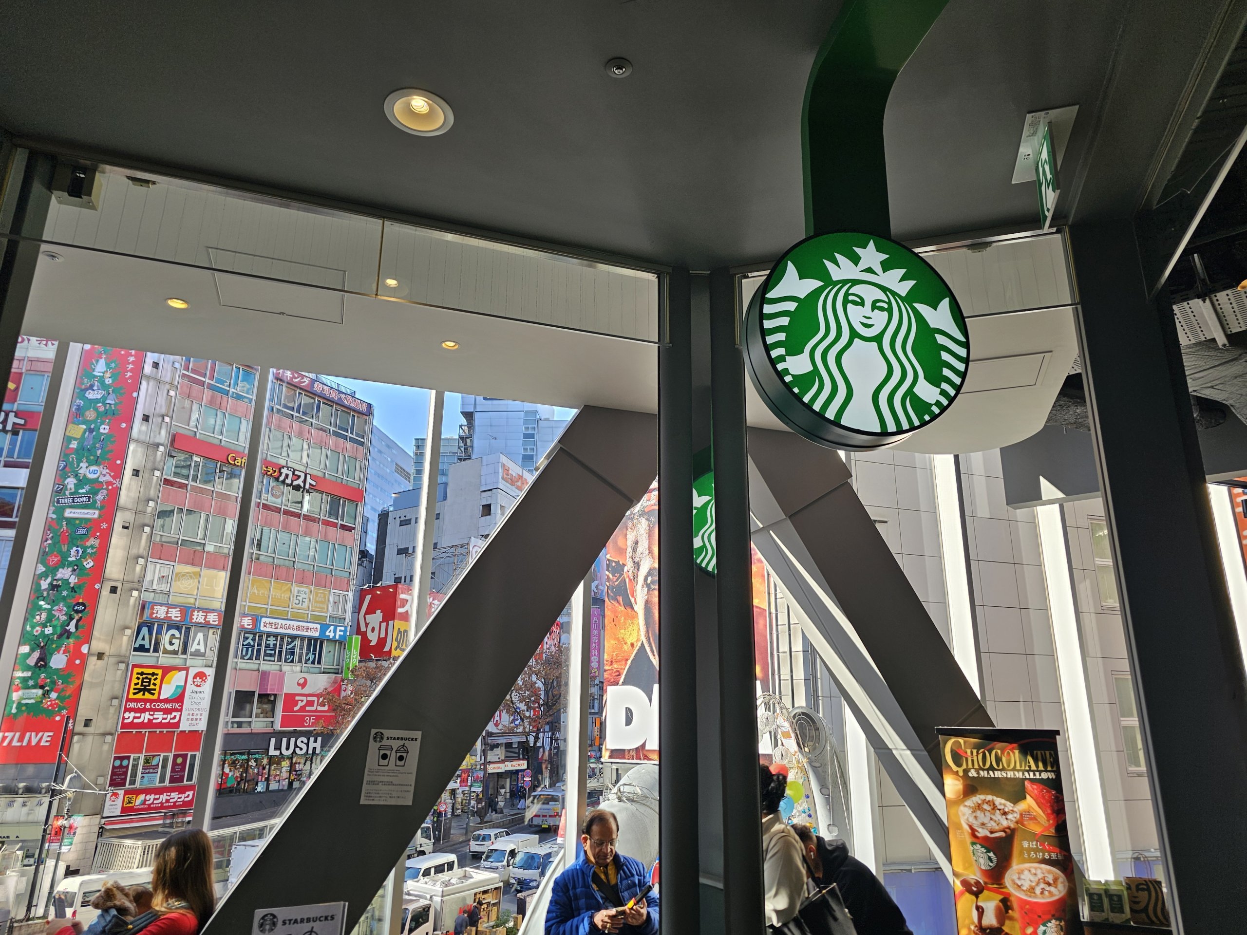 Tiene una bonita vista del cruce de Shibuya, aunque no tan perfecta como Share Lounge, ya que está ligeramente obstruida por la estructura del tejado.