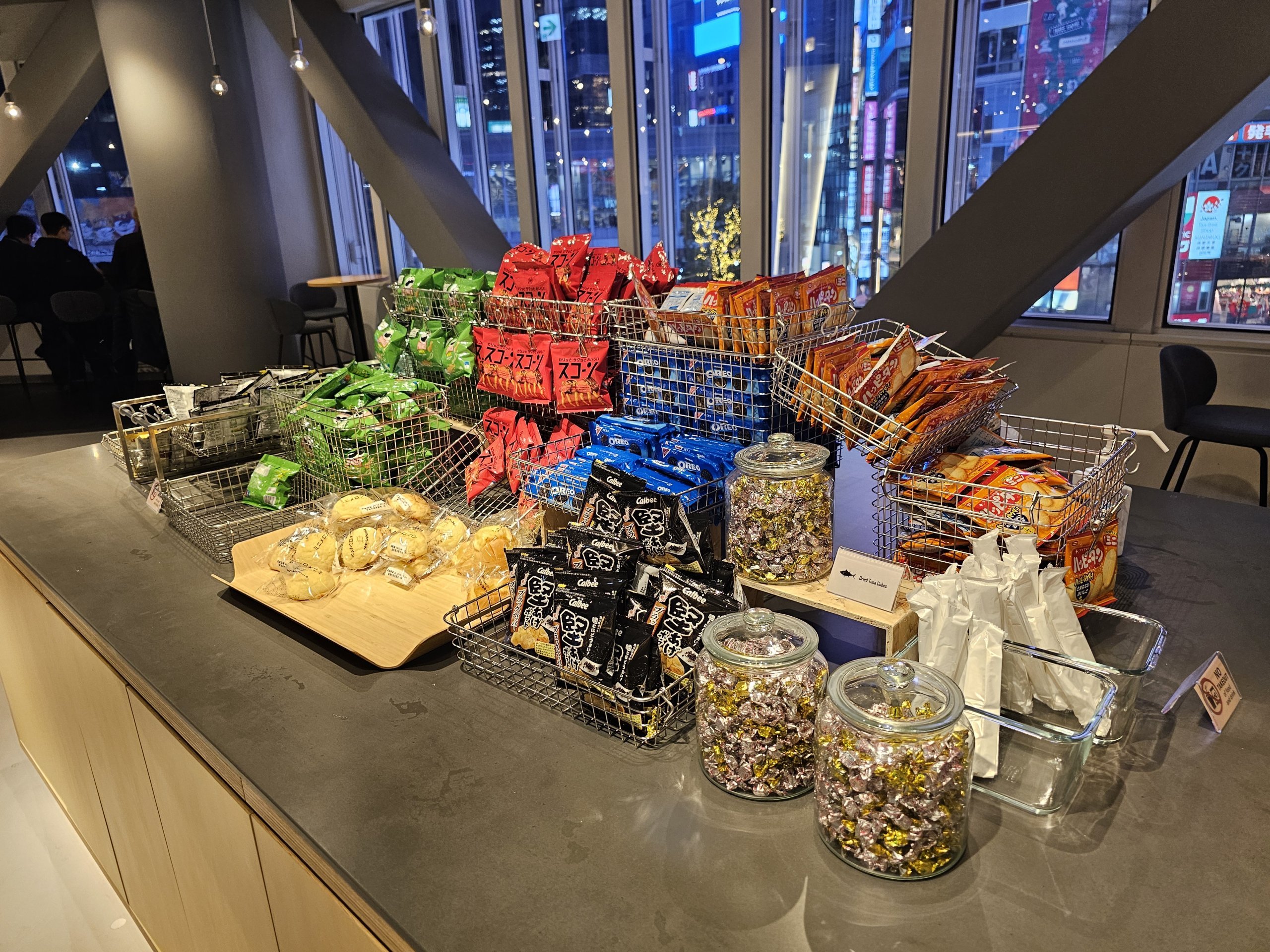 Este espacio se parece más a una sala VIP de aeropuerto. El precio de la entrada incluye aperitivos sencillos, como bebidas frías, café de la máquina expendedora o pequeños dulces.