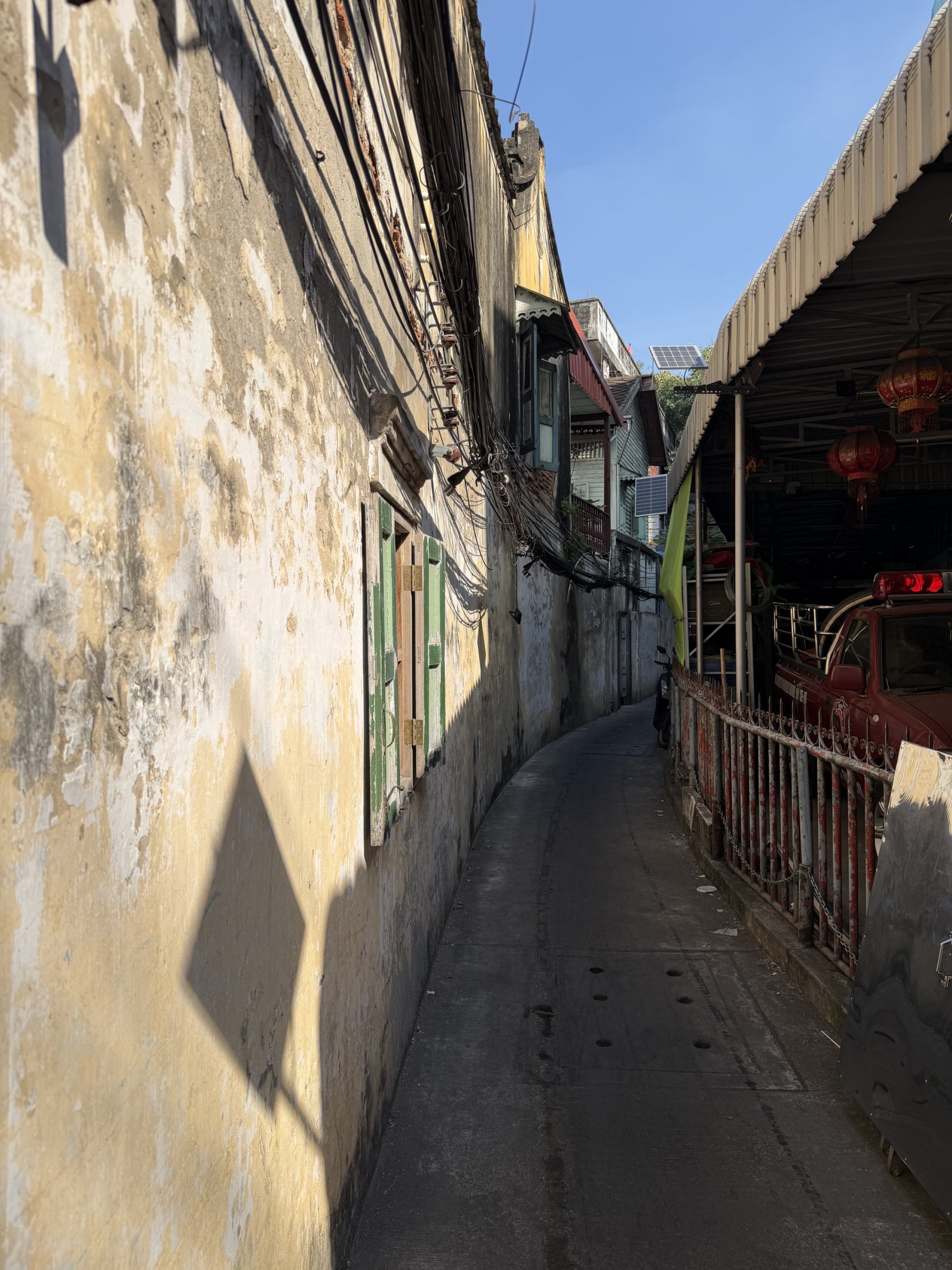Calles estrechas, talleres de automóviles oxidados, antiguas casas chinas, pequeños santuarios y cafés en antiguos almacenes crean un ambiente que se parece más a un decorado de película que a un barrio turístico.