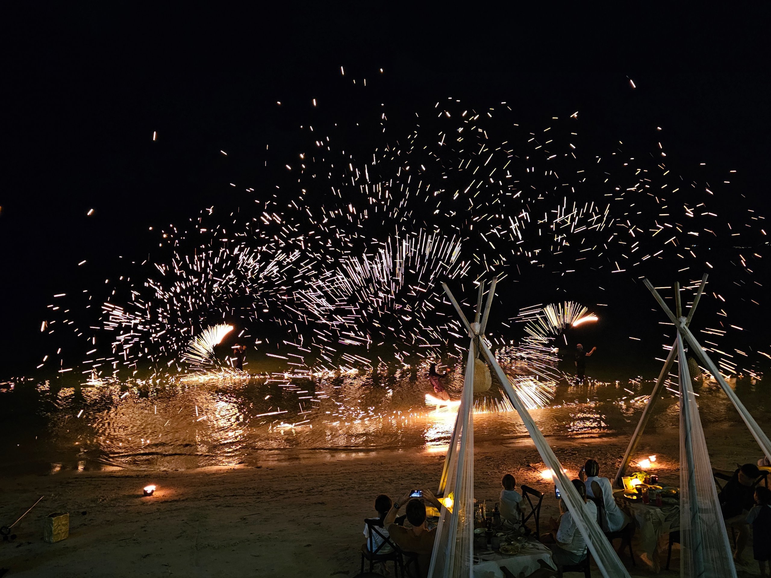 Estos espectáculos de fuego son gratuitos y se pueden ver a cualquier hora, sin necesidad de reservar; todos los días hay varios en la playa.