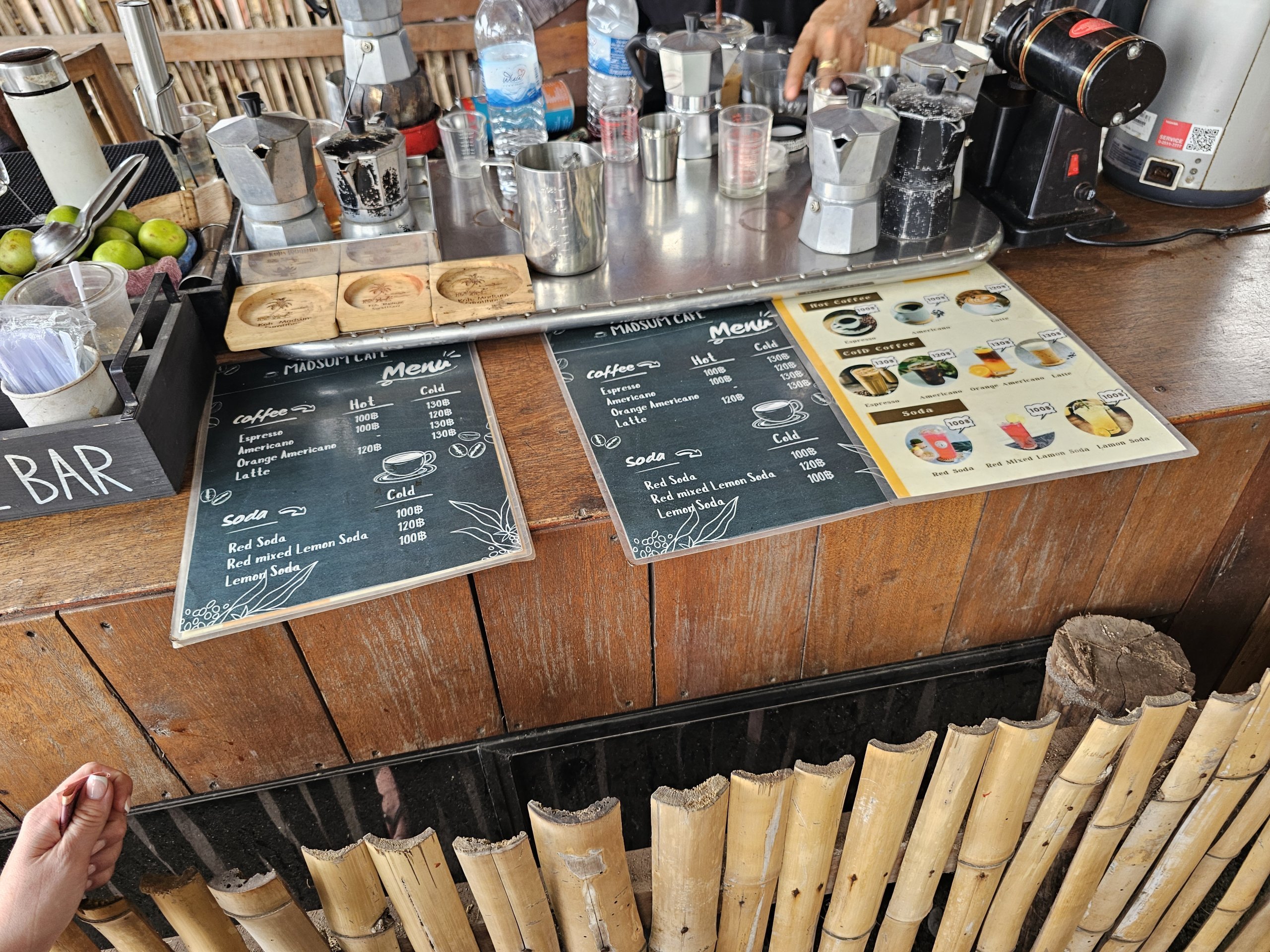 - los precios del café rondan las 130 thb, los de la comida a partir de 200 thb, sólo en efectivo