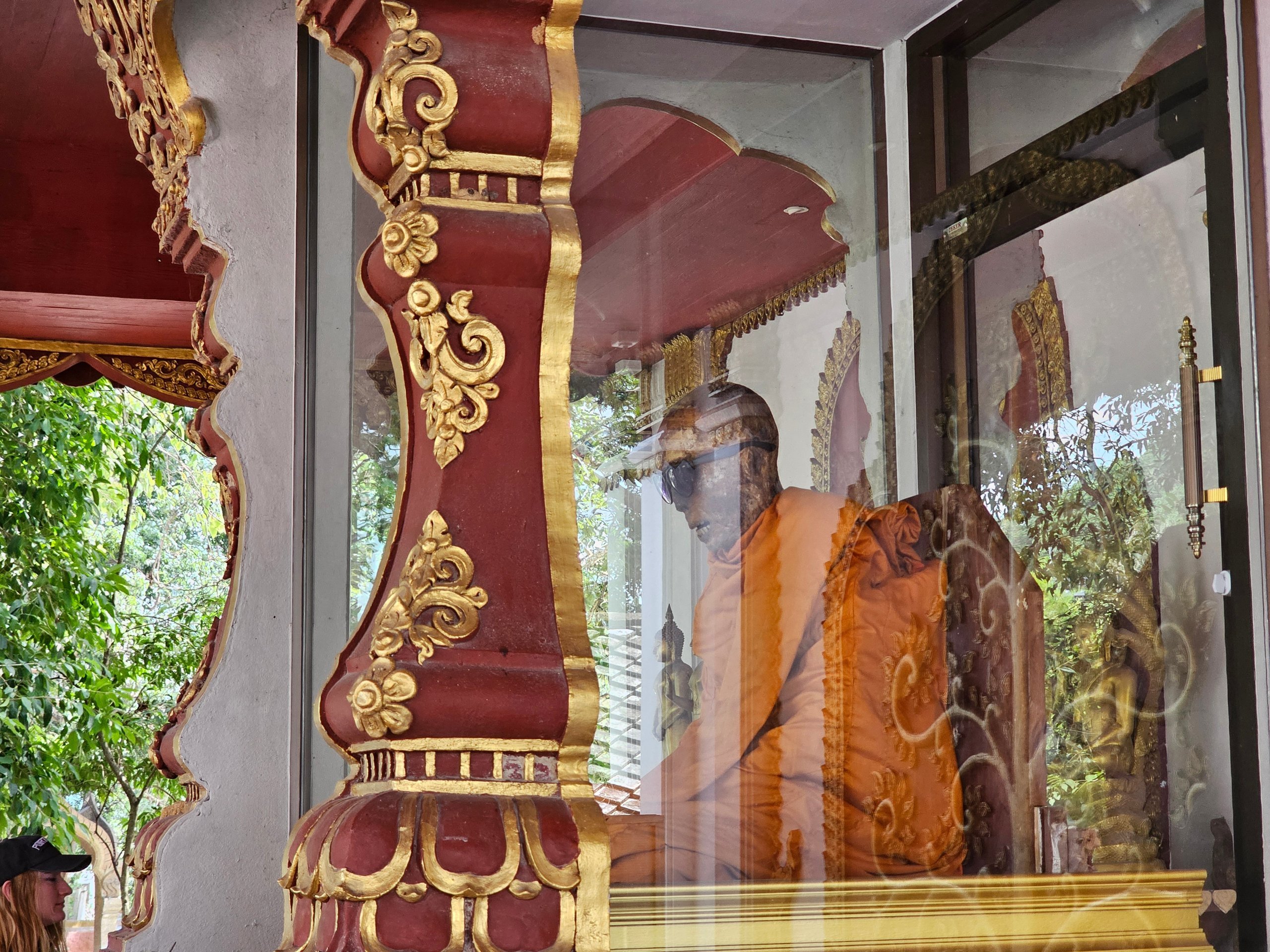 En su interior se encuentra el cuerpo momificado del monje Luang Pho Daeng, que murió en posición de meditación y aún se exhibe en una caja de cristal.
