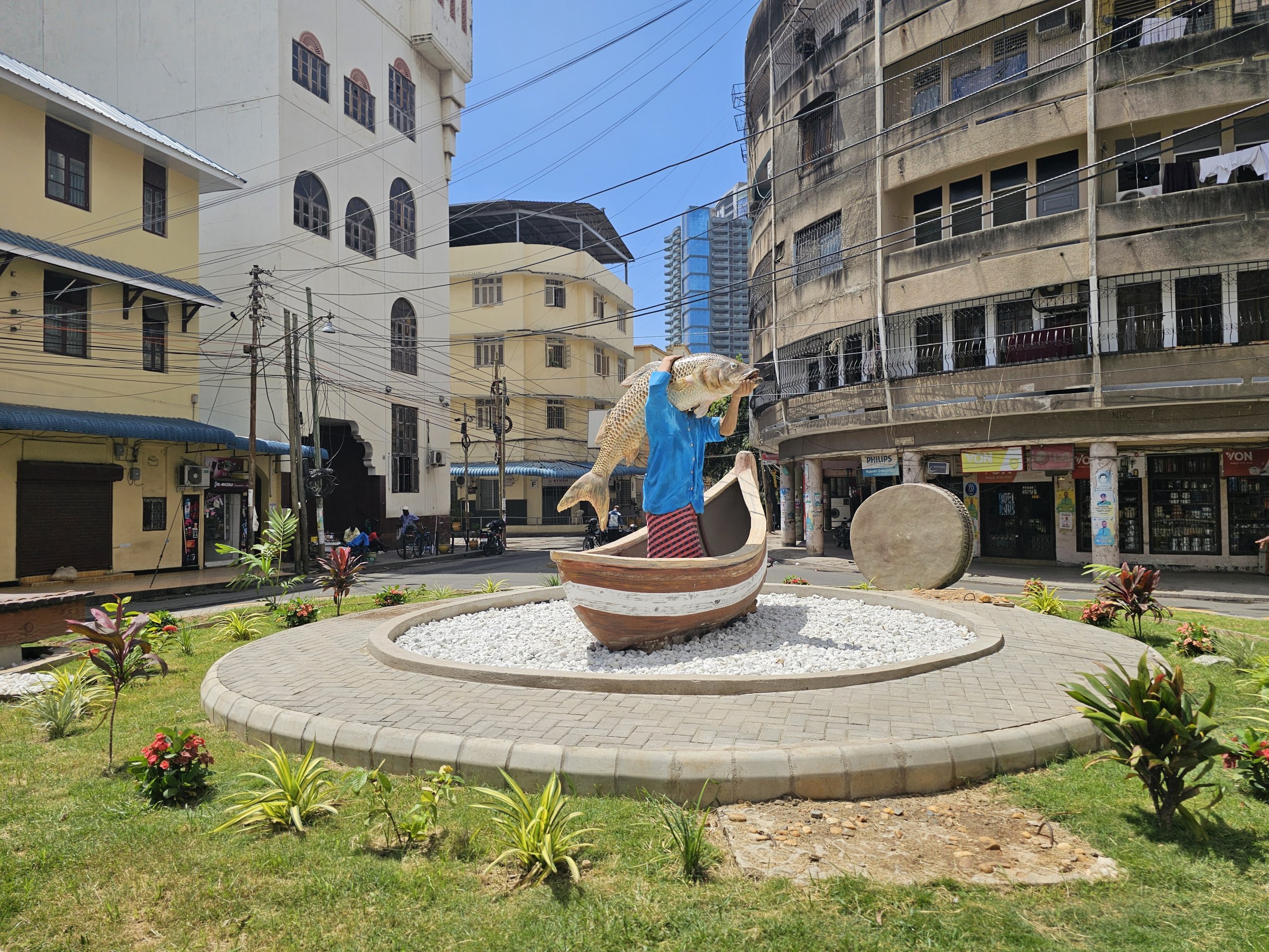 Muchas de las rotondas tienen estatuas extravagantes de la vida local: encontrará estatuas de pescadores, cocos y tiburones, por ejemplo.