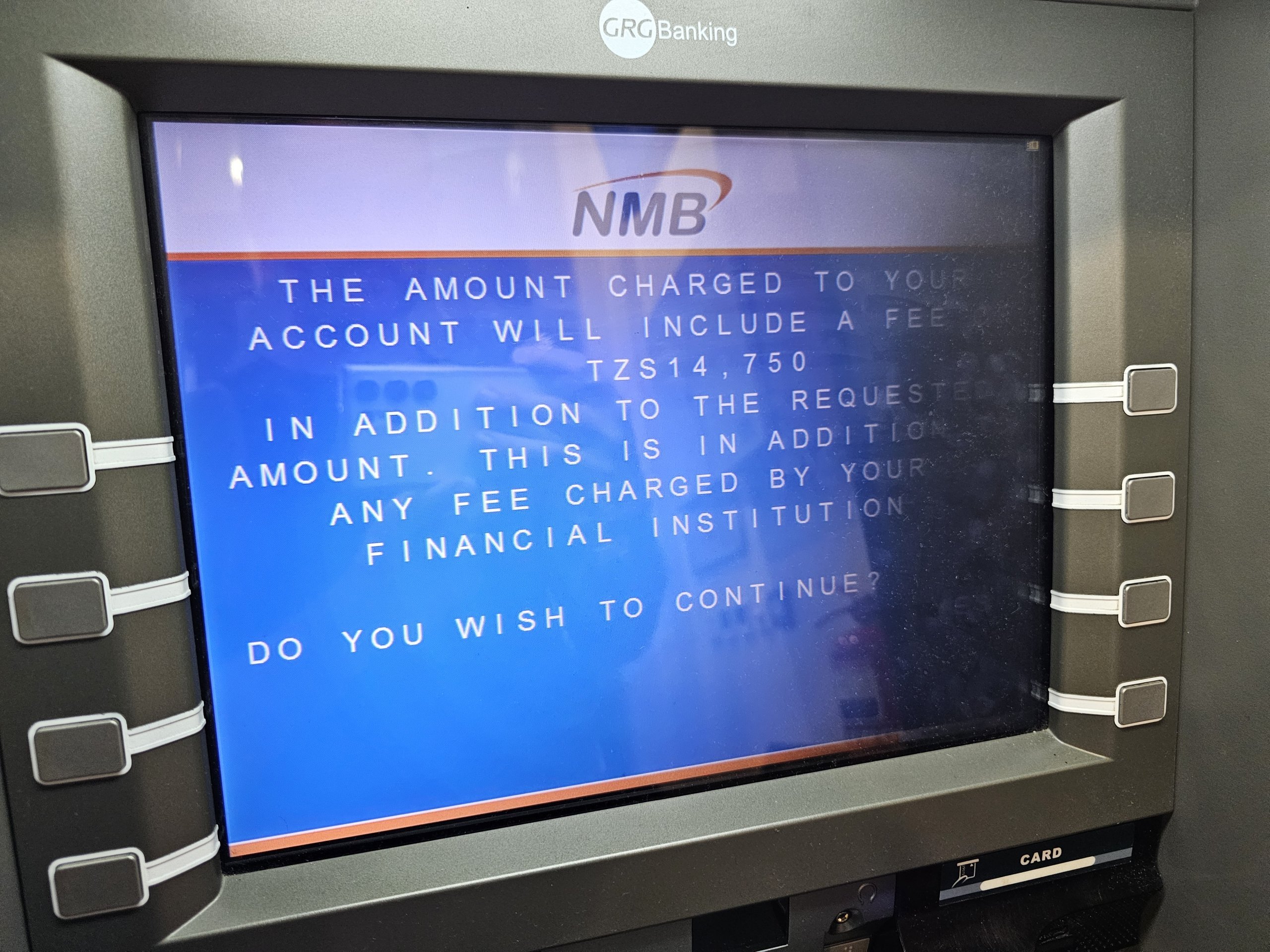 Normalmente, los reintegros con tarjeta extranjera tienen un coste de unas 15 000 tzs. La comisión más baja que encontramos en un cajero del Banco de Zanzíbar fue de 10 000 tzs.