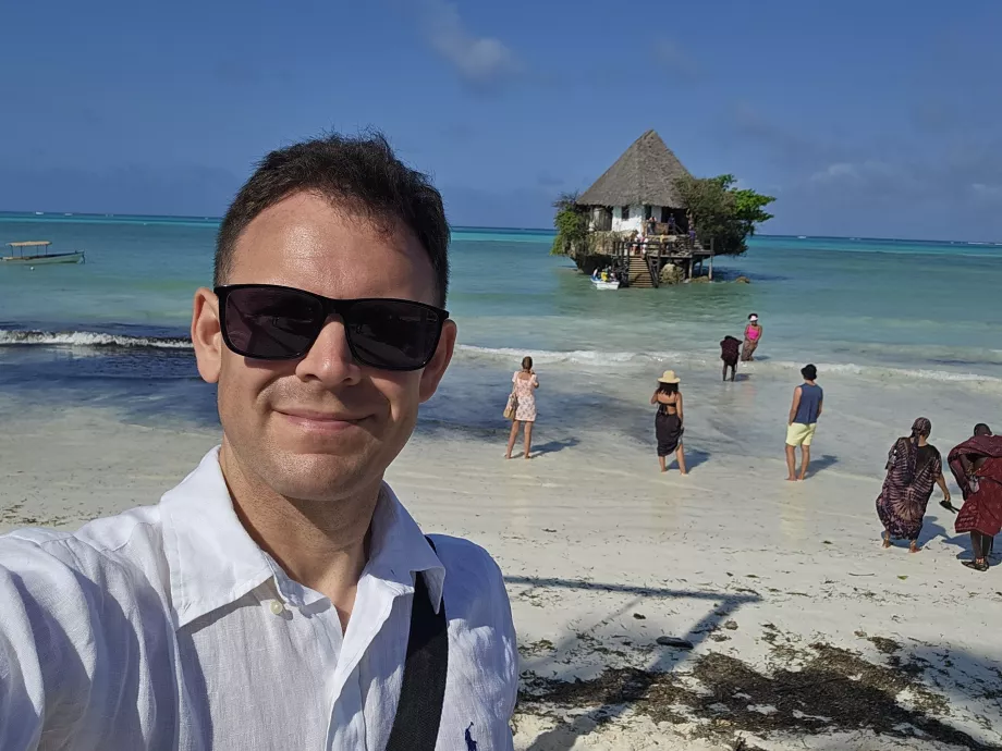 Cuando vio un solitario trozo de roca que sobresalía del océano cerca de la playa de Michamwi, supo inmediatamente que allí quería construir un restaurante con estilo.