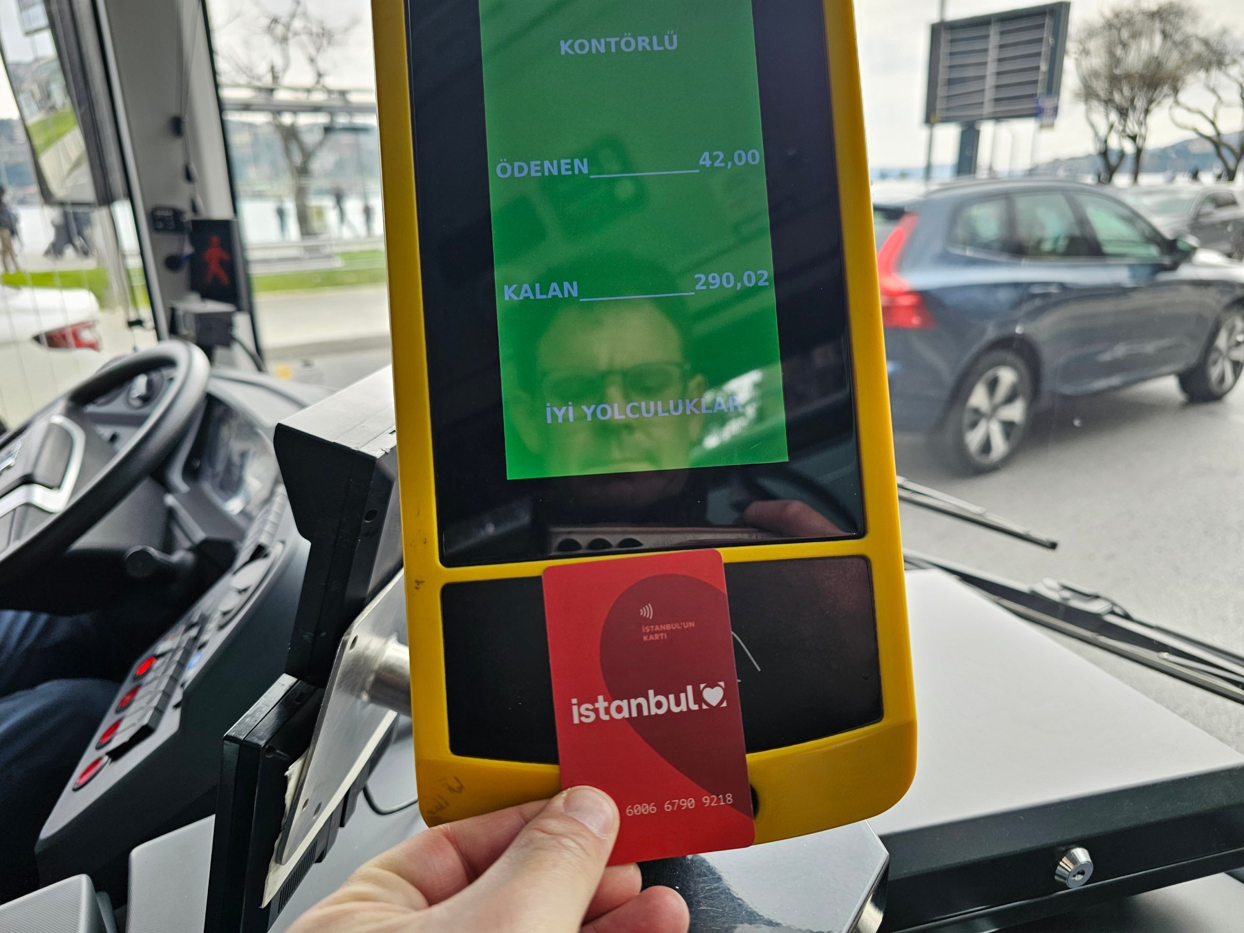 Hay un validador cerca del conductor, al que se adjunta un Istanbulkart o su propia tarjeta sin contacto.