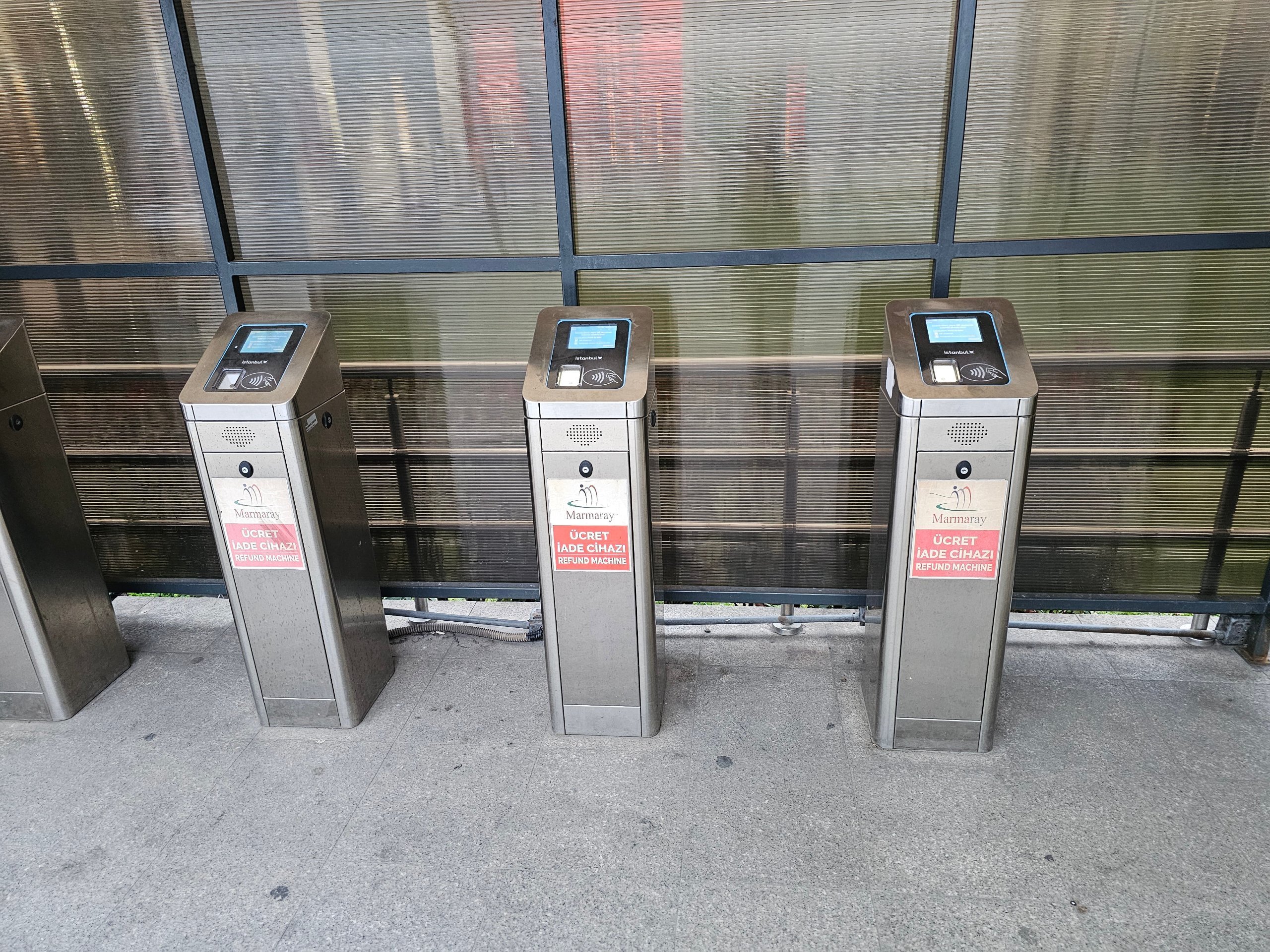 Al salir de la estación, se encuentran los pequeños validadores plateados (a veces rojos) de la "máquina de reembolso", a los que se vuelve a conectar el IstanbulKart y se calcula el precio real (normalmente unos 35 intentos para la corta travesía Sirkeci - Üsküdar.