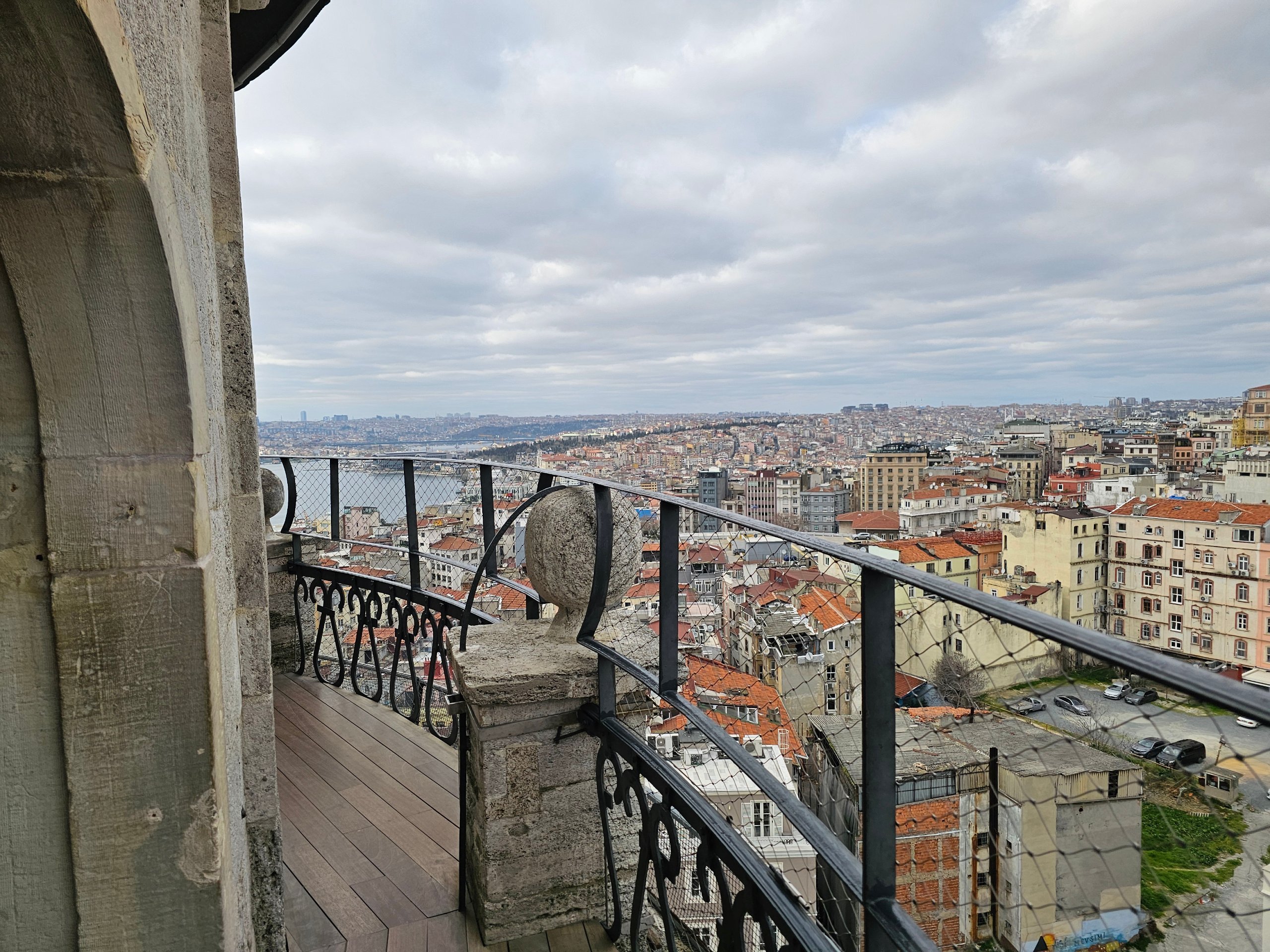 La Torre Gálata dispone de un mirador circular al aire libre = 360° panorámico con magníficas condiciones para la fotografía. Pero el espacio es estrecho y suele estar abarrotado.