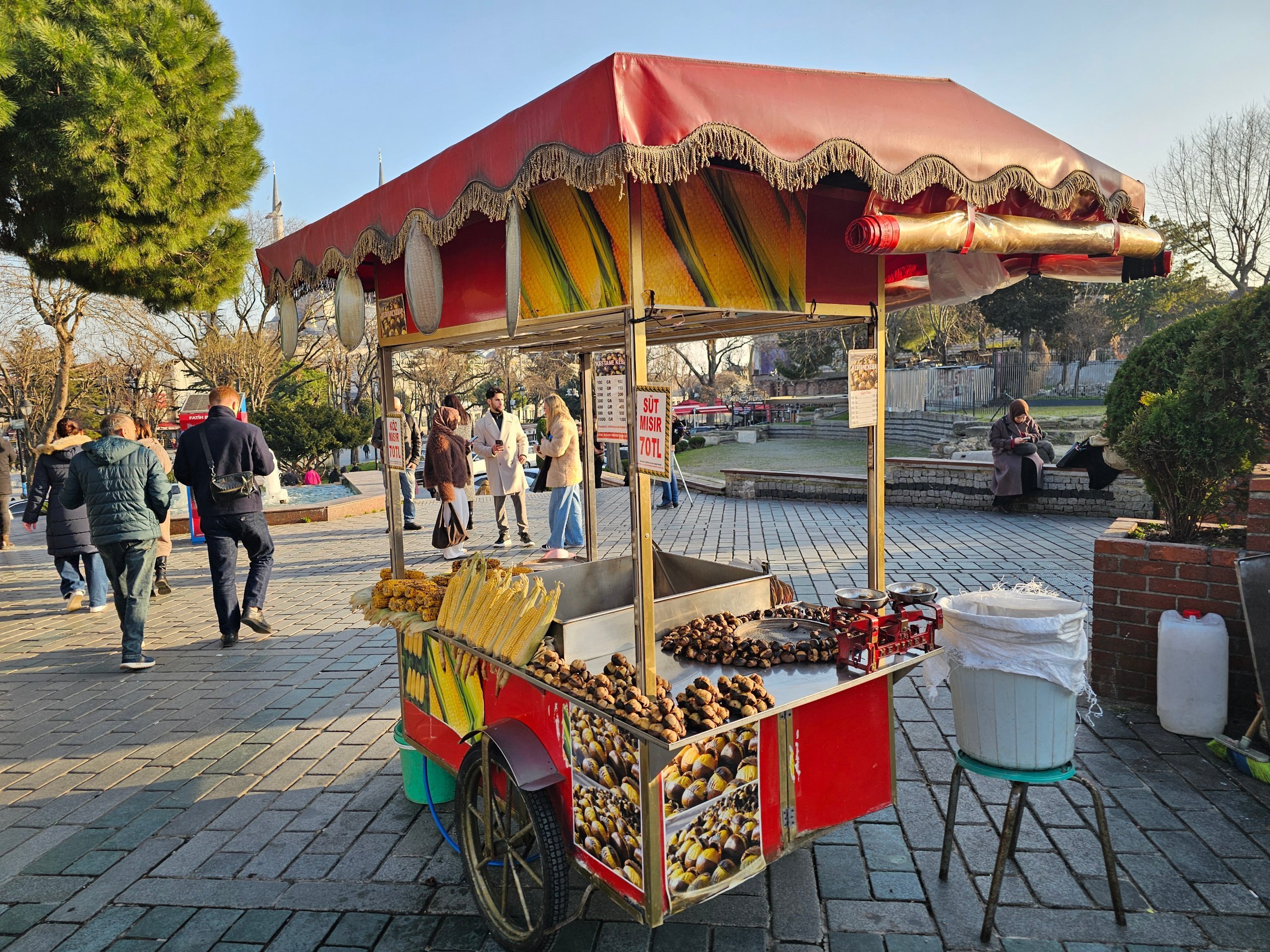 Una cultura específica de Estambul son los omnipresentes puestos con maíz hervido y castañas asadas.