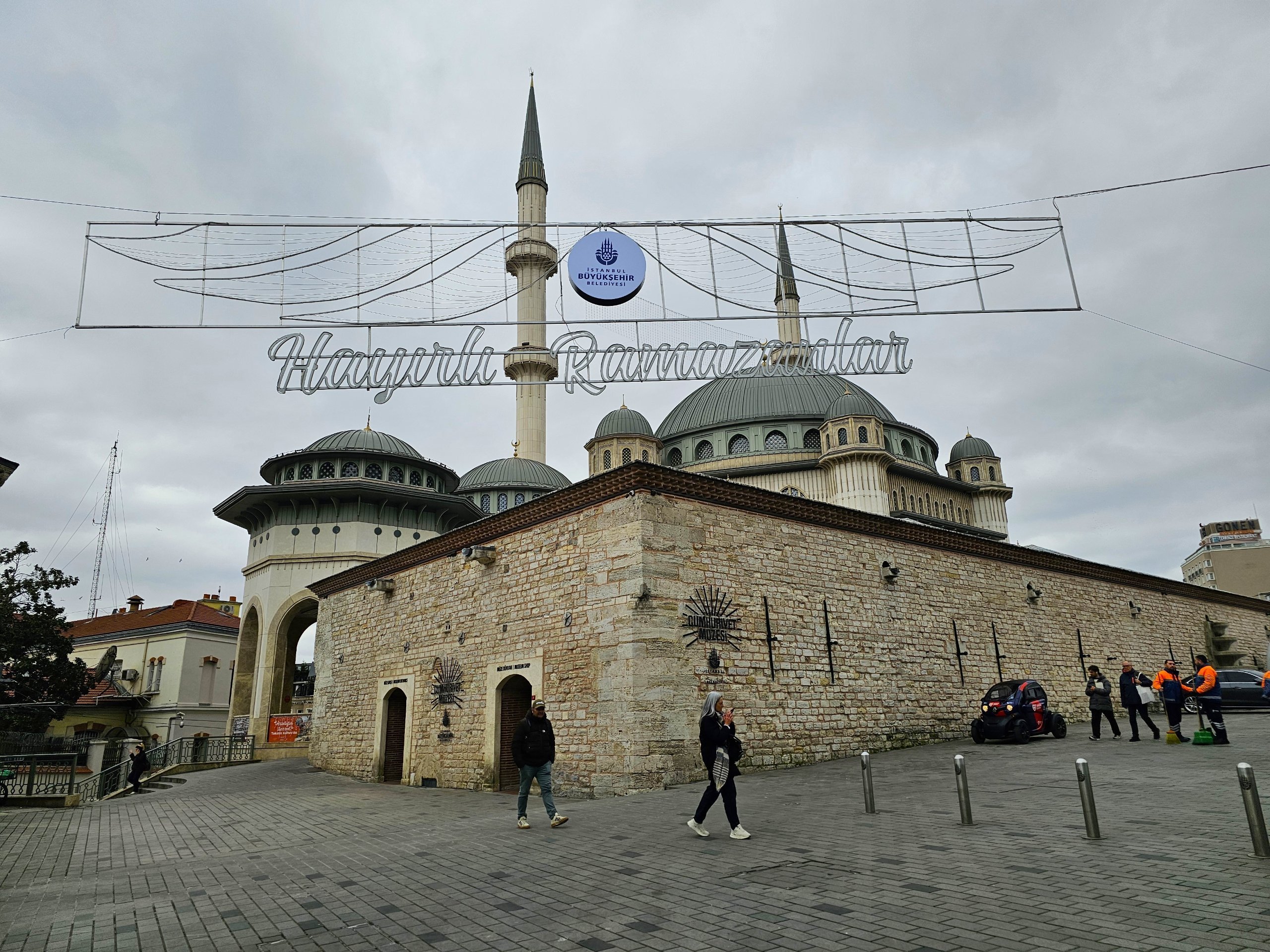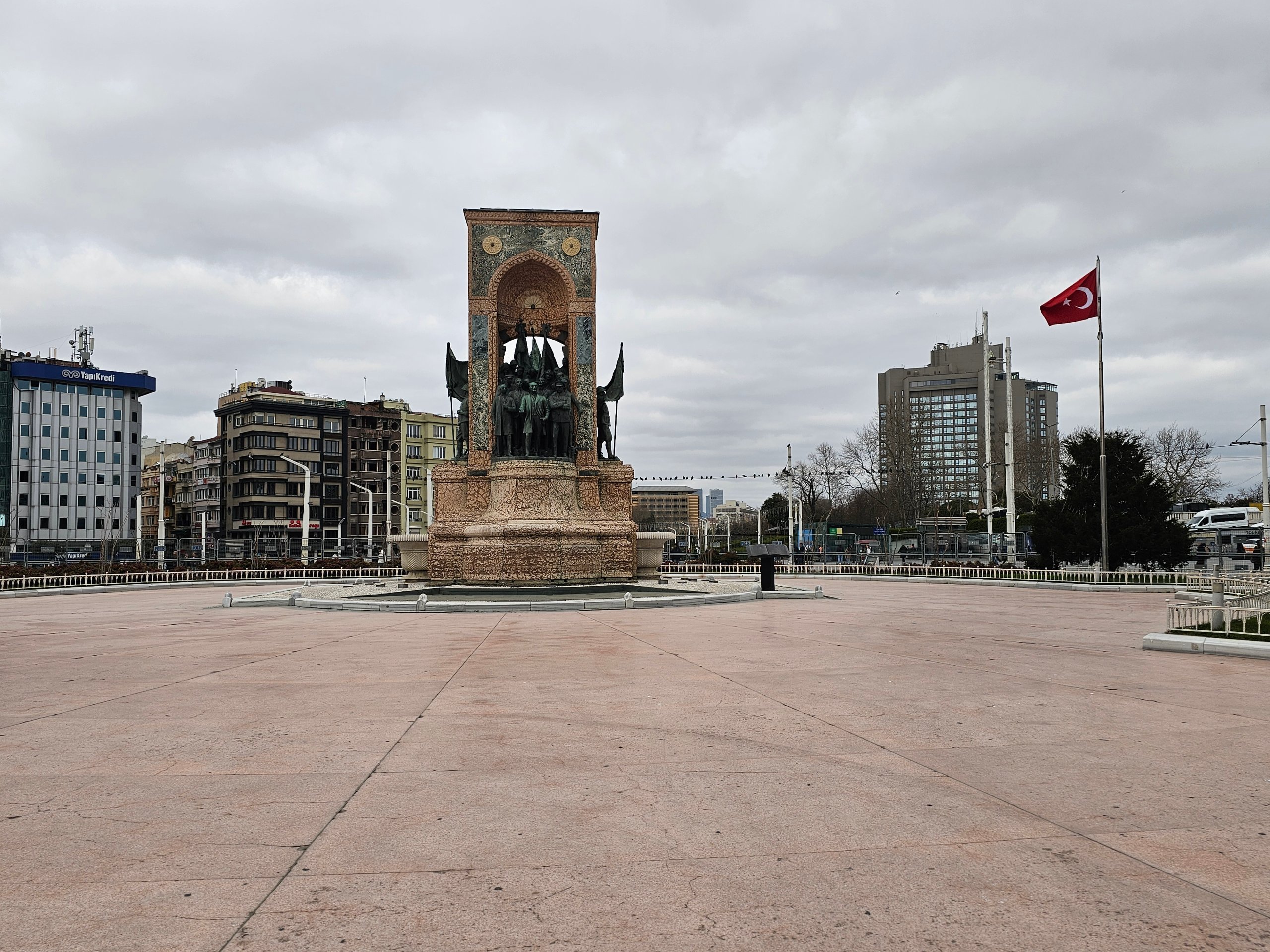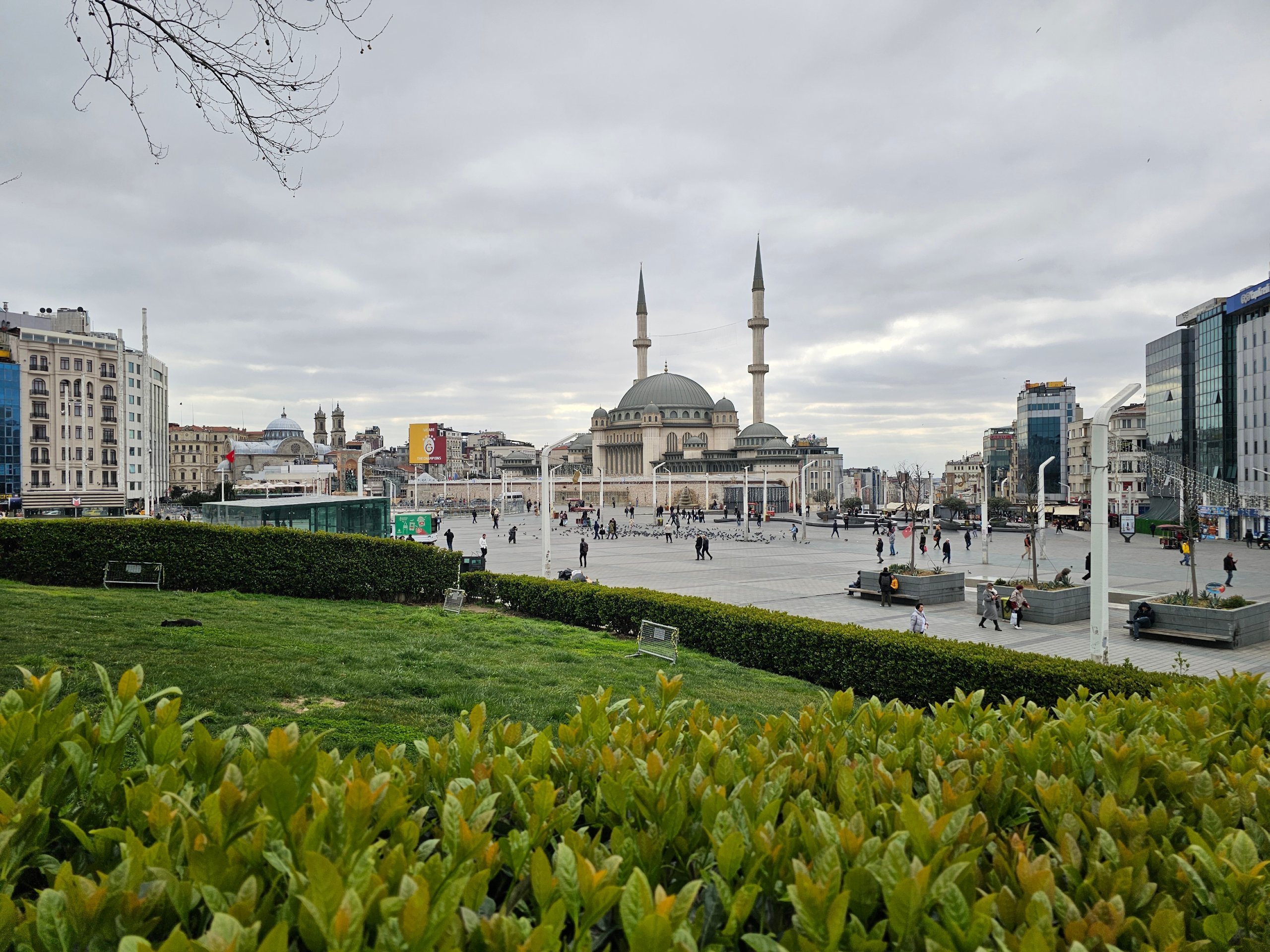 Hay un bonito parque en el centro de la plaza y la mezquita de Taksim se encuentra en el extremo sur.
