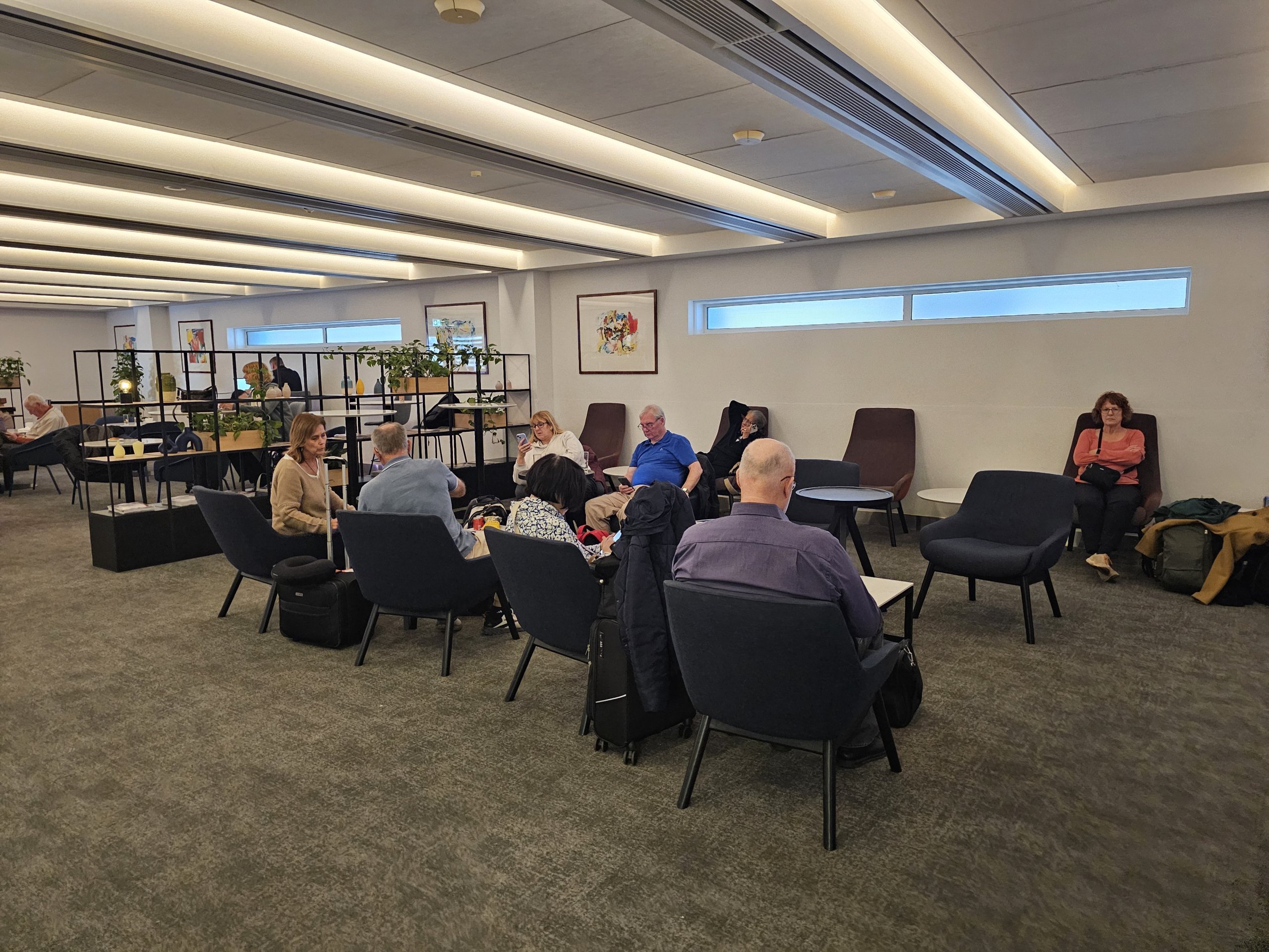 La sala Galleries Lounge está destinada principalmente a pasajeros de clase business y de programas de viajero frecuente de aerolíneas de categoría oro o superior.