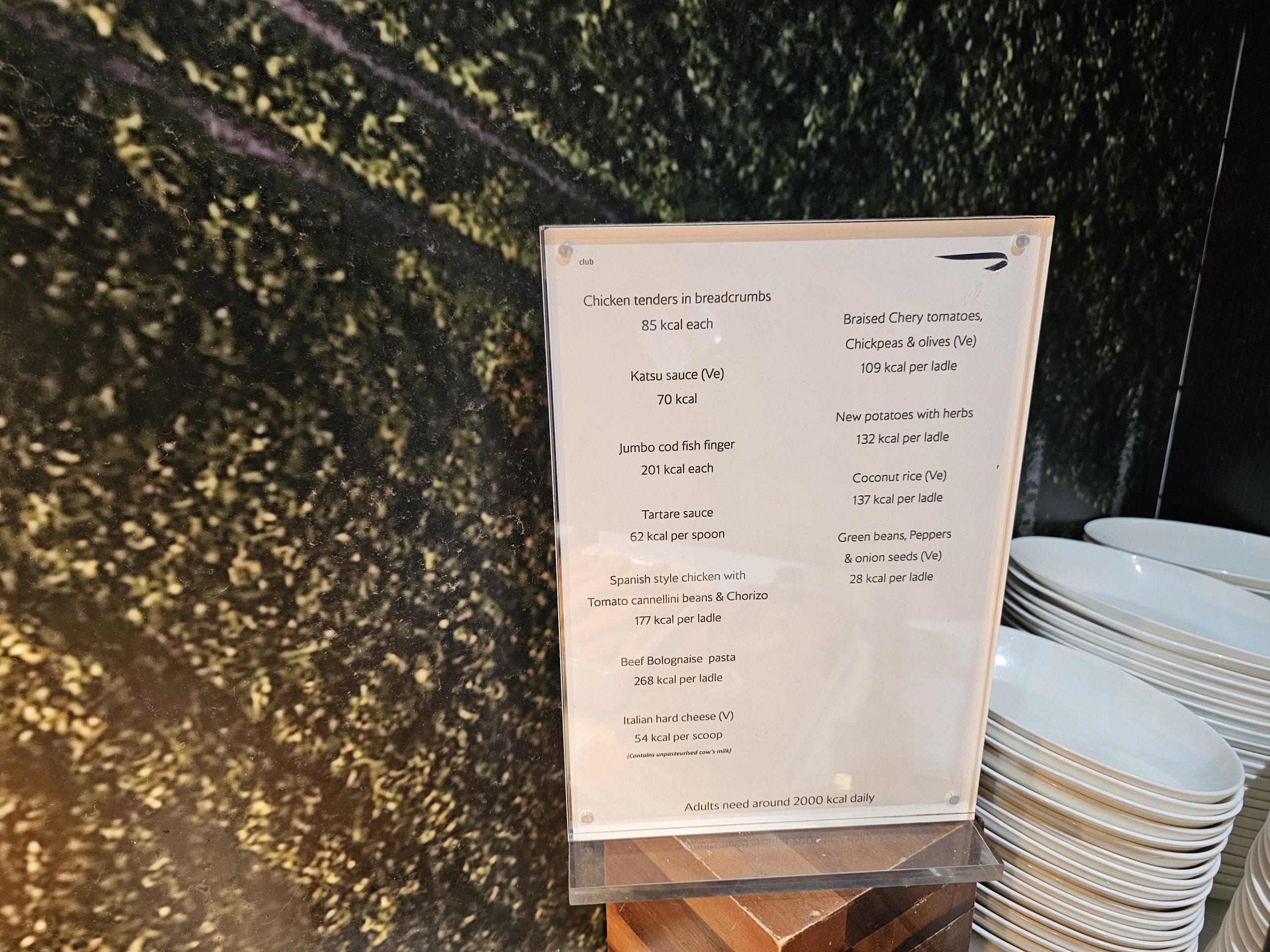 Como nota positiva, hay un cartel con el contenido calórico de toda la comida que se ofrece.