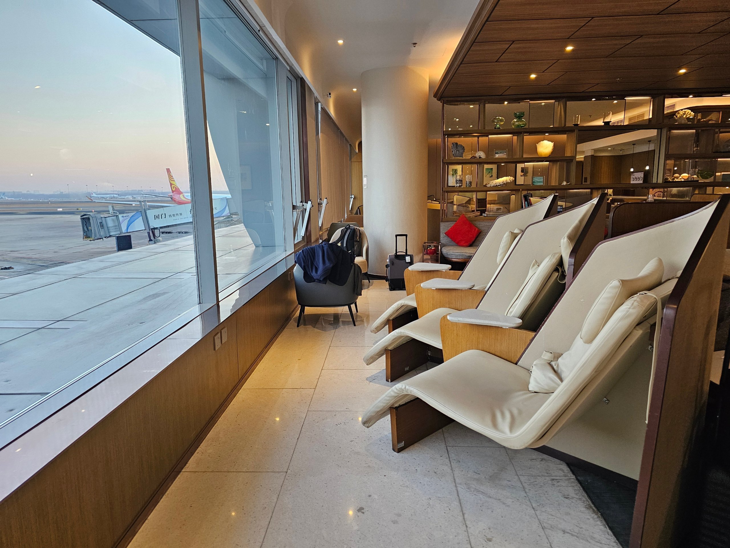 Pasamos un rato en la sala VIP de Hainan Airlines, que forma parte del producto business.