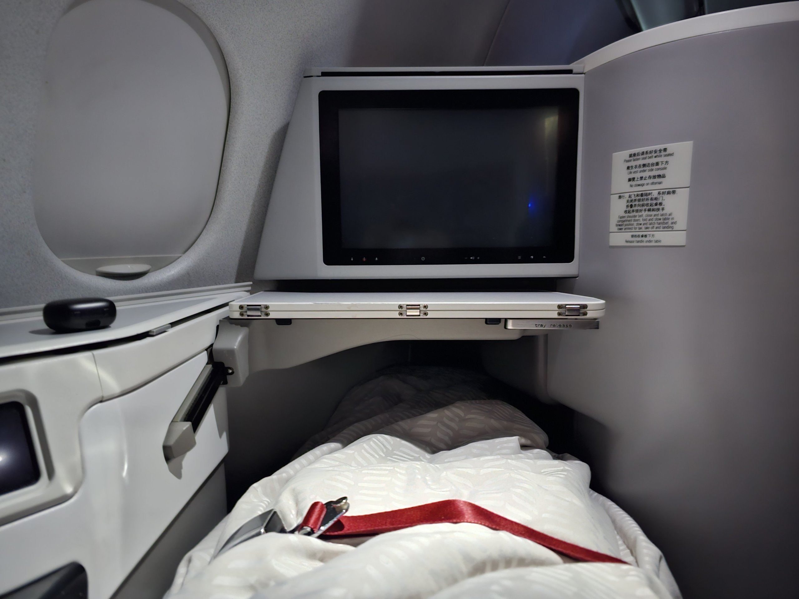 La cama es suficientemente larga para mí (mido 175 cm) y la cabina es relativamente silenciosa. Si tu principal objetivo es llegar a Asia con sueño, el Airbus A330-300 cumple esa función.