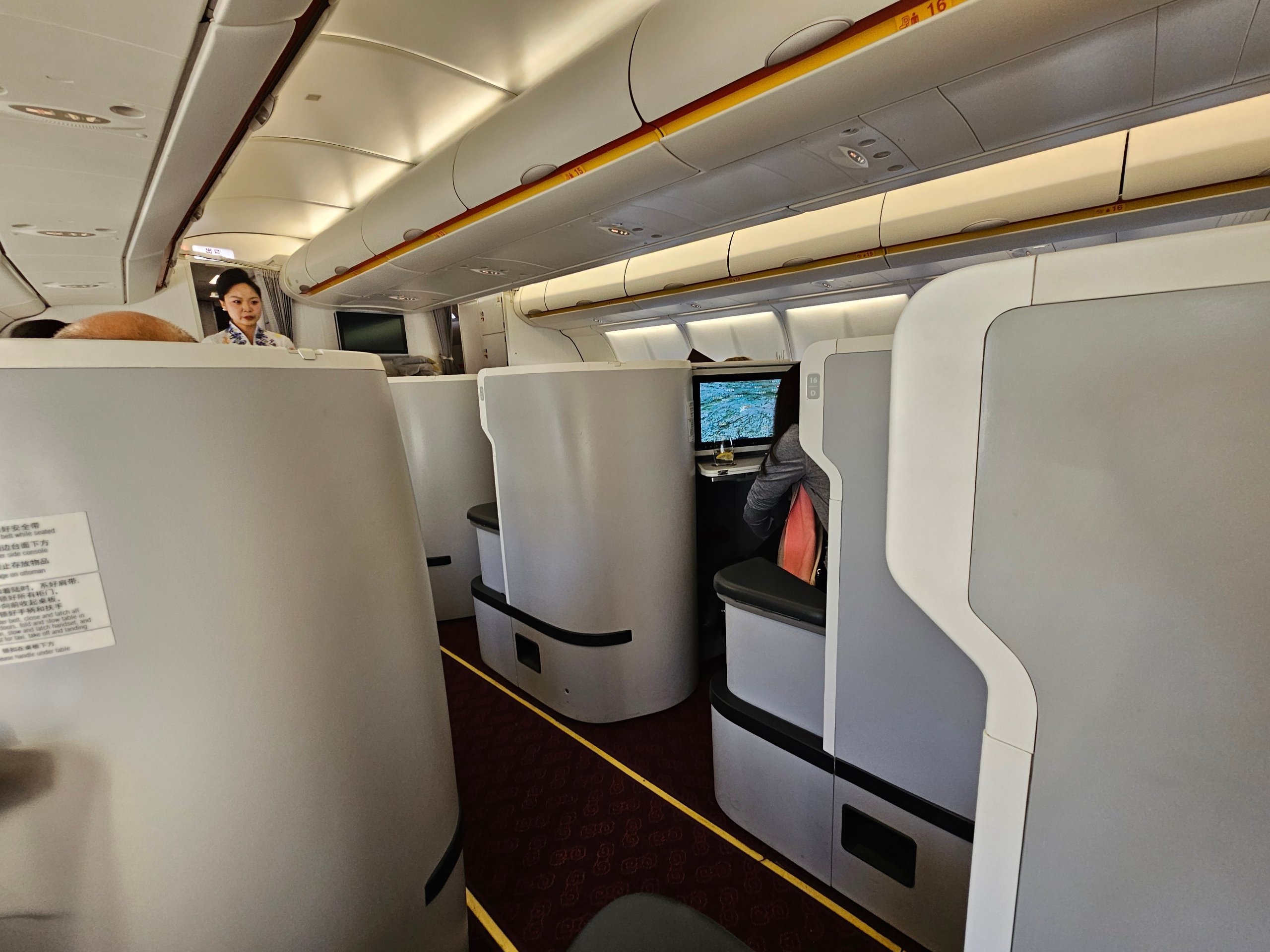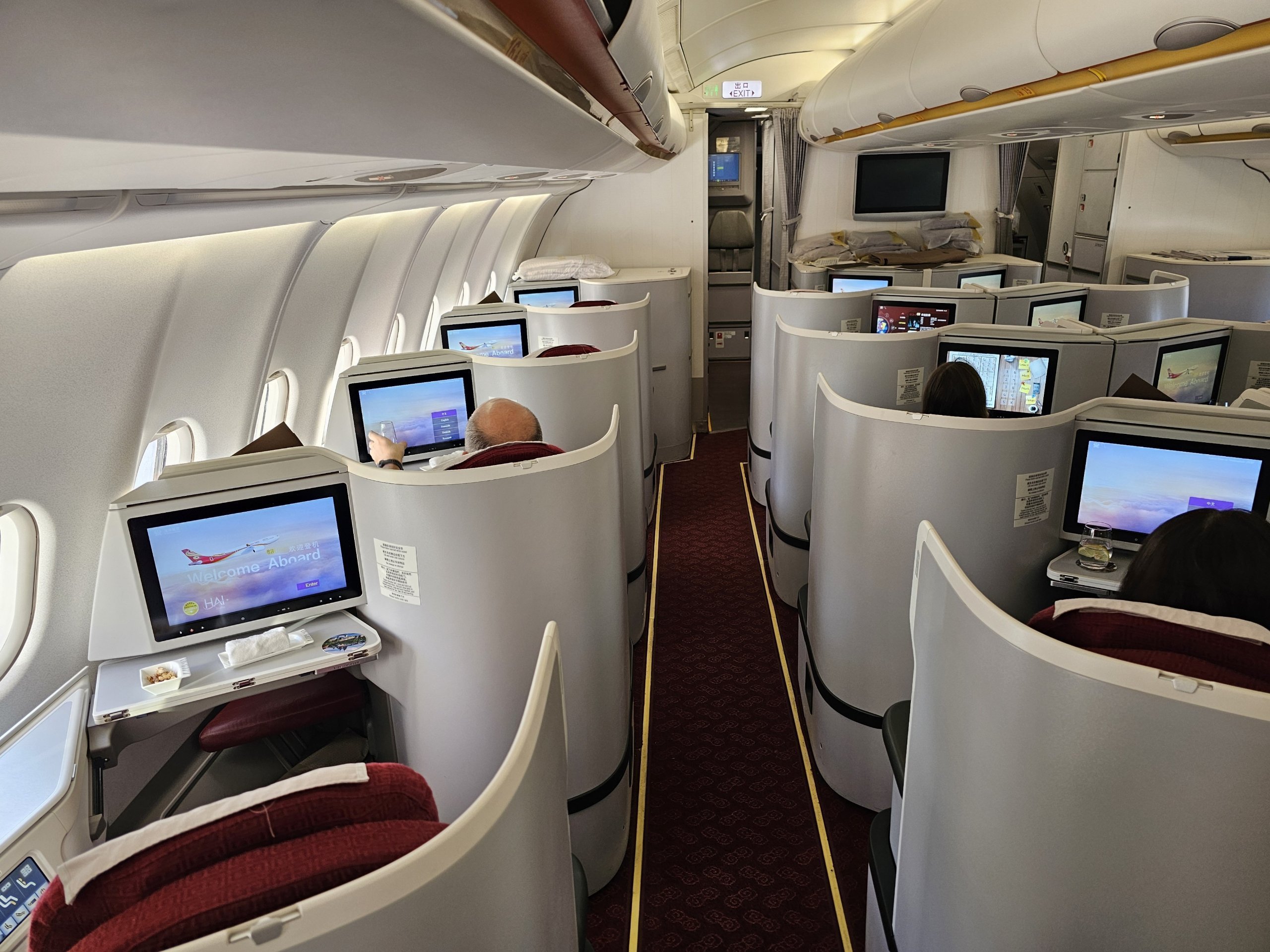 El Airbus A330-300 de Hainan Airlines ofrece una sólida privacidad y una cama totalmente plana en clase Business. Eso es lo básico que marca la diferencia en un vuelo de 10 horas.