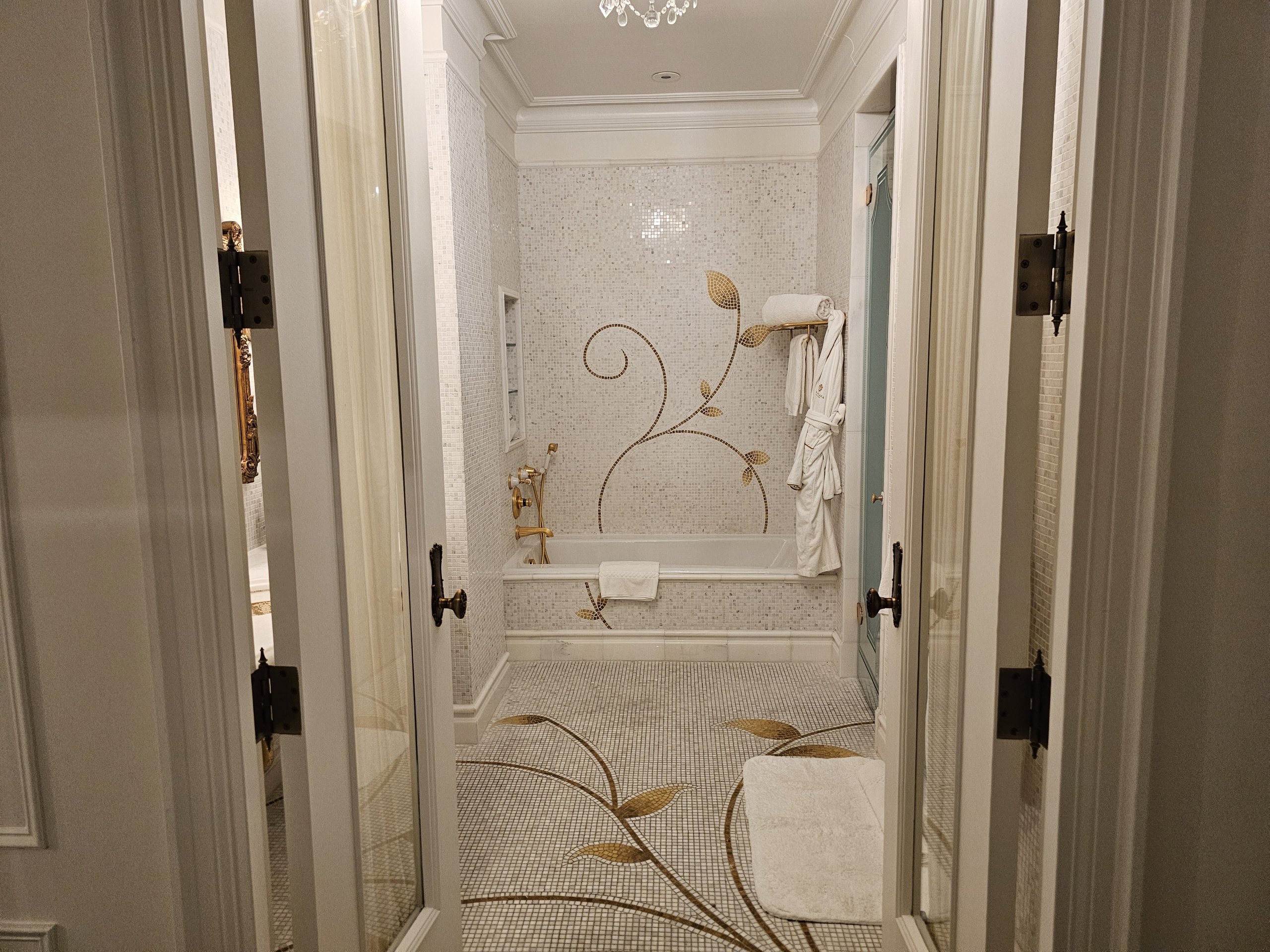 Elegante, lujo de buen gusto, precioso cuarto de baño y el ya mencionado embriagador aroma a gardenia, que personalmente me encantó.