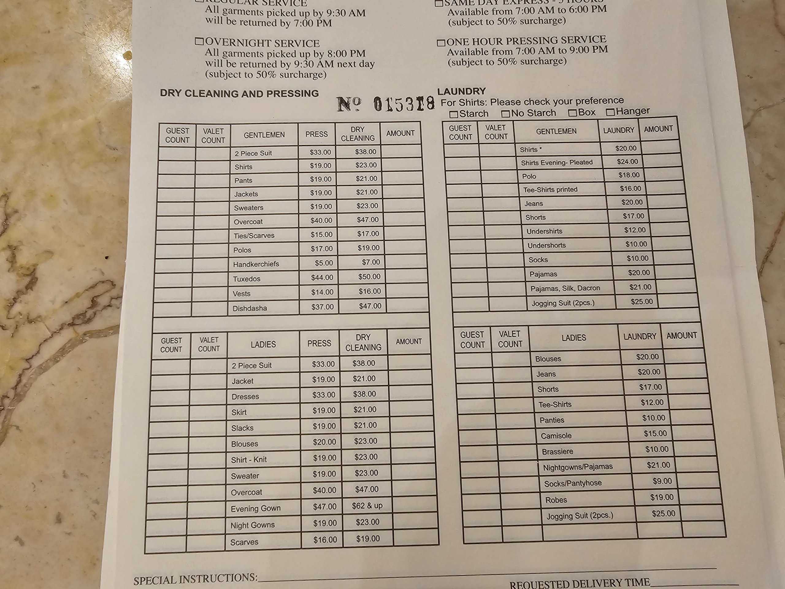 Por supuesto, también puede utilizar laundry service - puede pedir que le laven cualquier cosa con un plazo de entrega estándar al día siguiente o el mismo día con un cargo adicional.