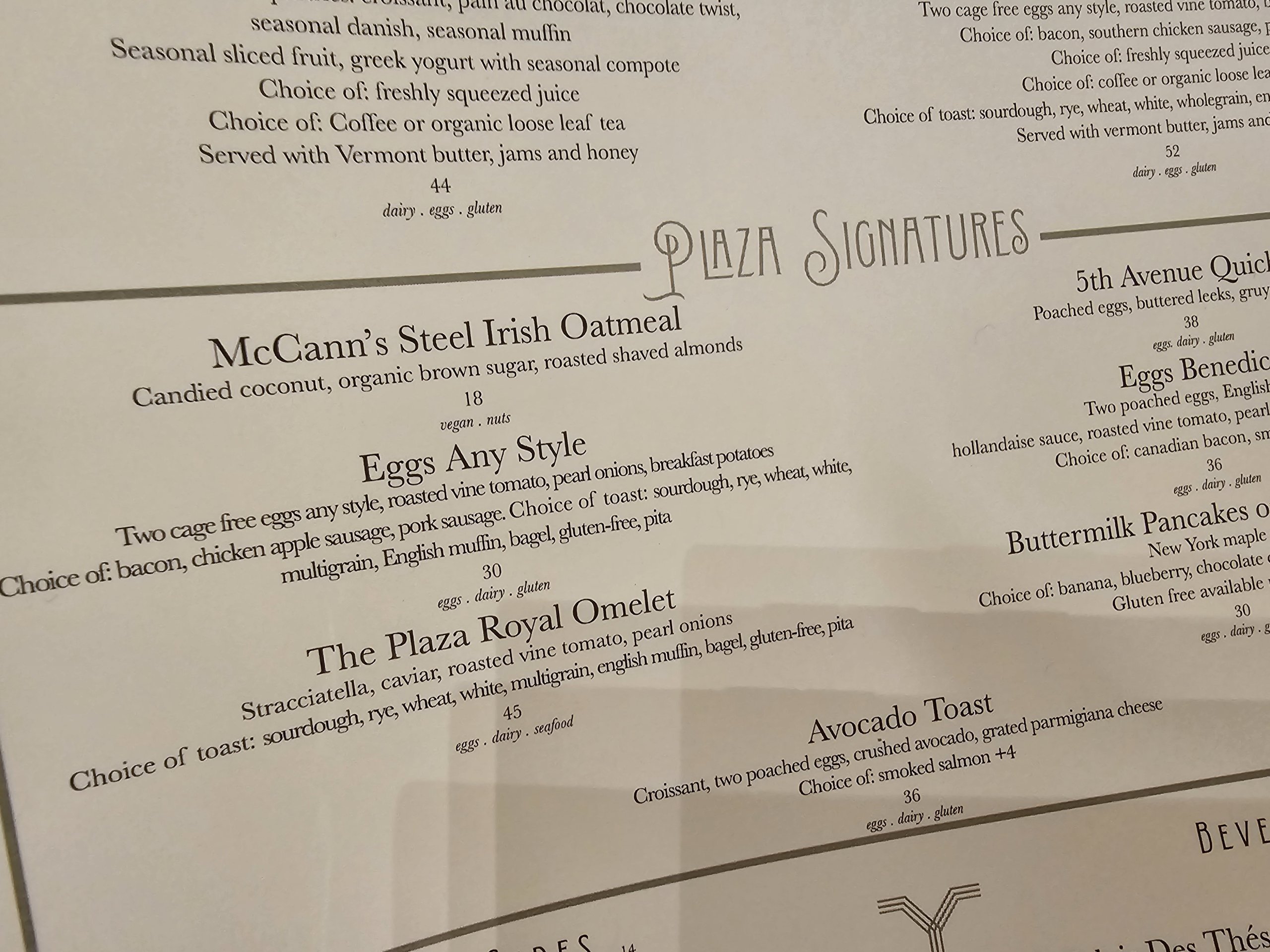 El desayuno sólo se sirve a la carta, no hay desayuno buffet disponible en el Plaza.