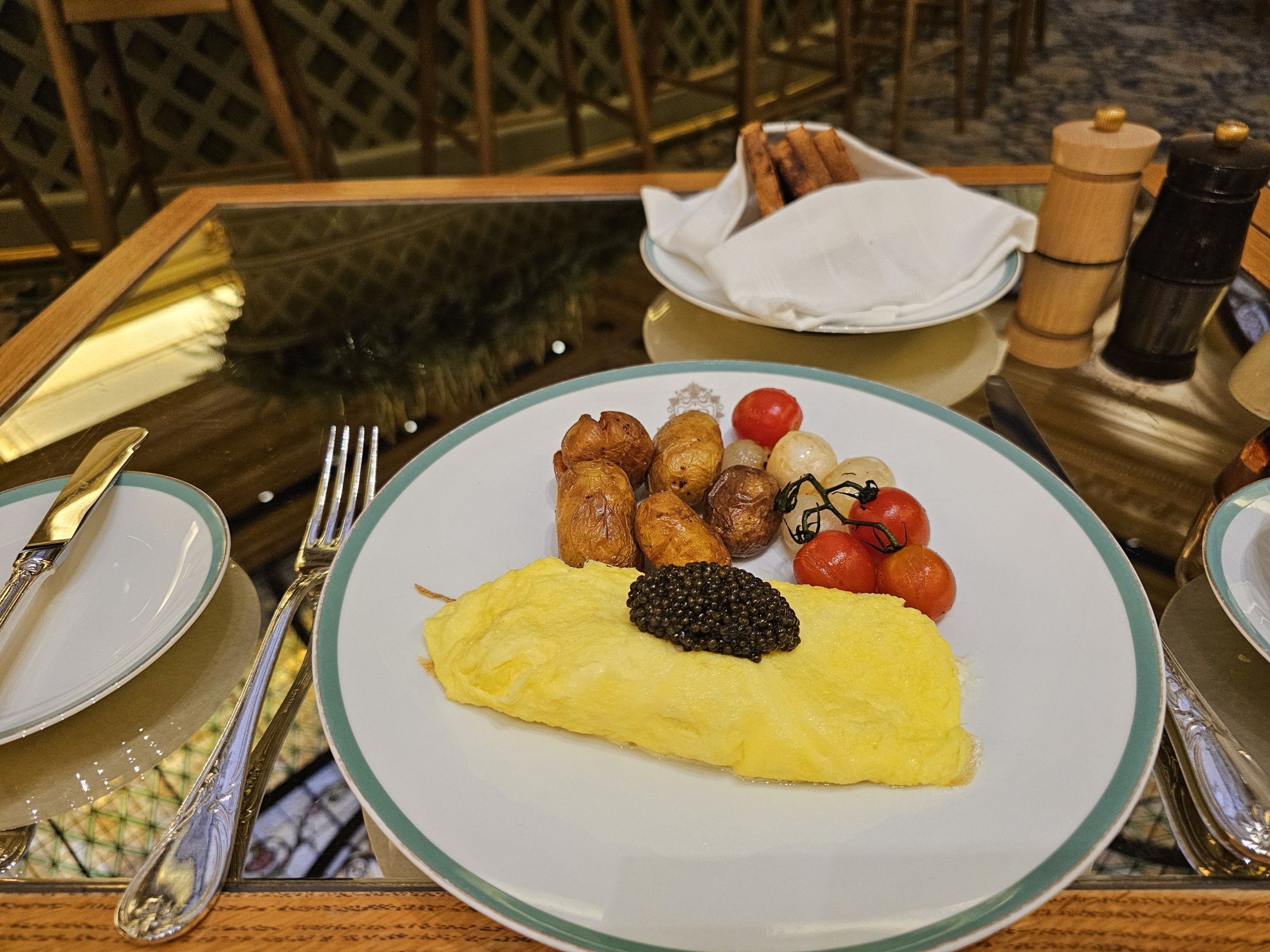 El desayuno se sirve tanto en el Palm Court como en el Champagne Bar - se puede pedir la misma comida en ambos sitios.